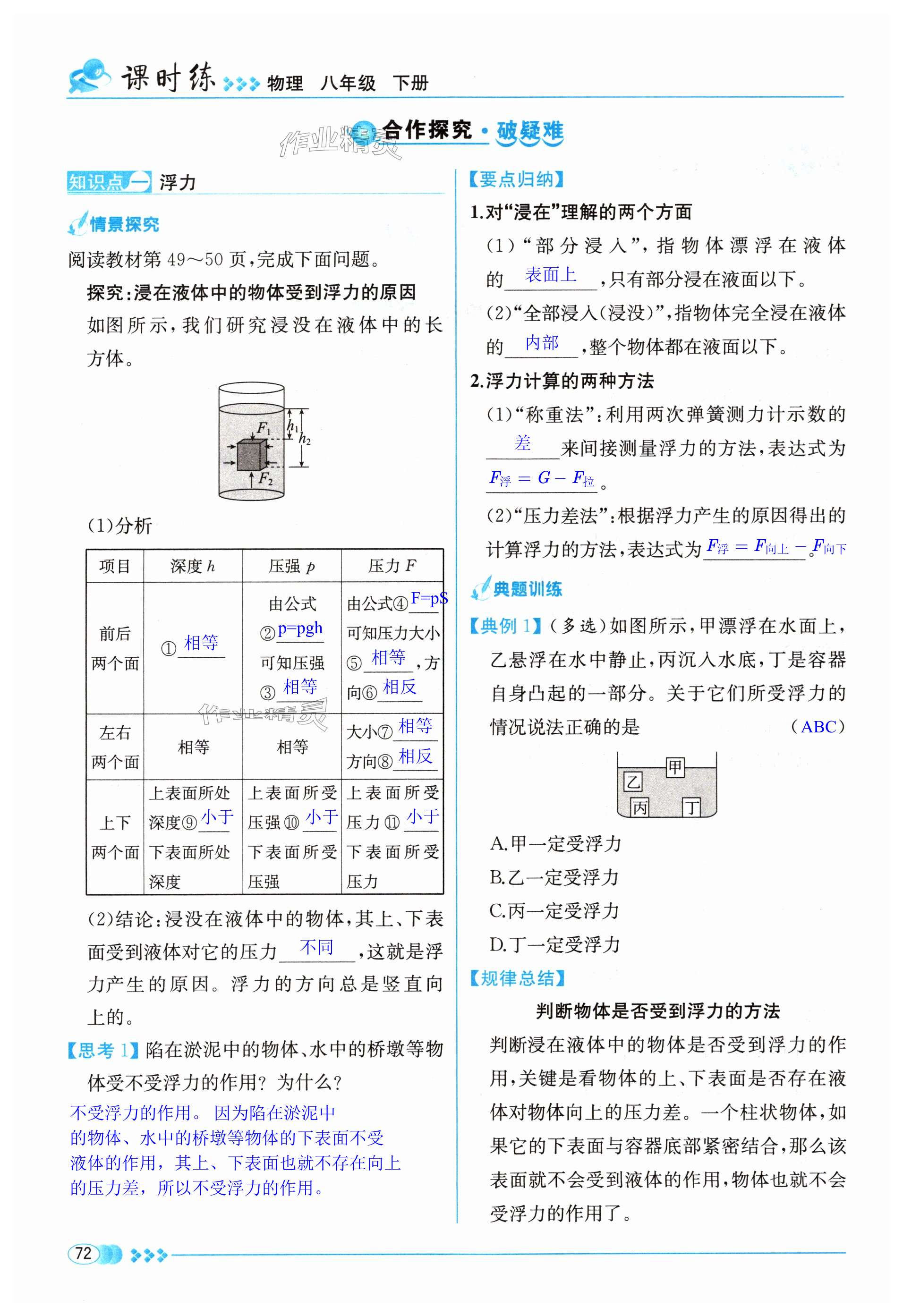 注:目前有些书本章节名称可能整理的还不是很完善,但都是按照顺序排列的,请同学们按照顺序仔细查找。练习册 2024年课时练人民教育出版社八年级物理下册人教版 答案主要是用来给同学们做完题方便对答案用的,请勿直接抄袭。