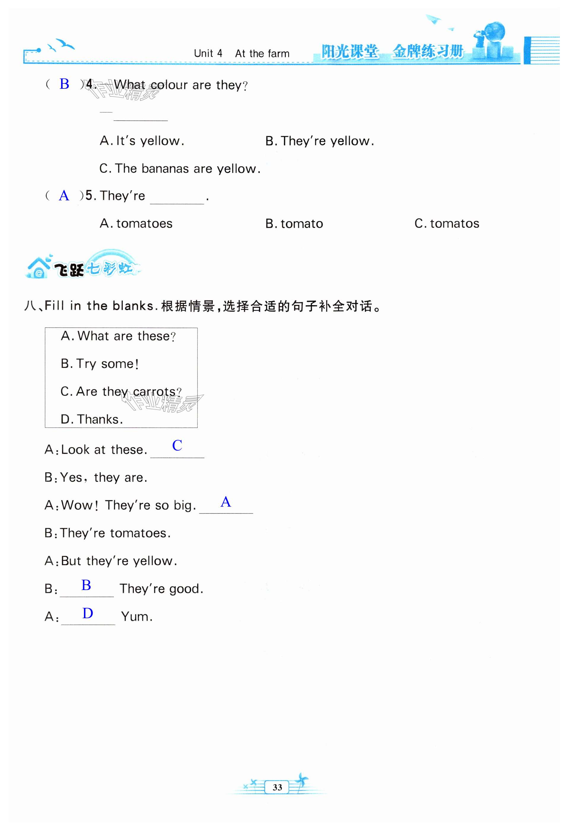 注:目前有些书本章节名称可能整理的还不是很完善,但都是按照顺序排列的,请同学们按照顺序仔细查找。练习册 2024年阳光课堂金牌练习册四年级英语下册人教版 答案主要是用来给同学们做完题方便对答案用的,请勿直接抄袭。