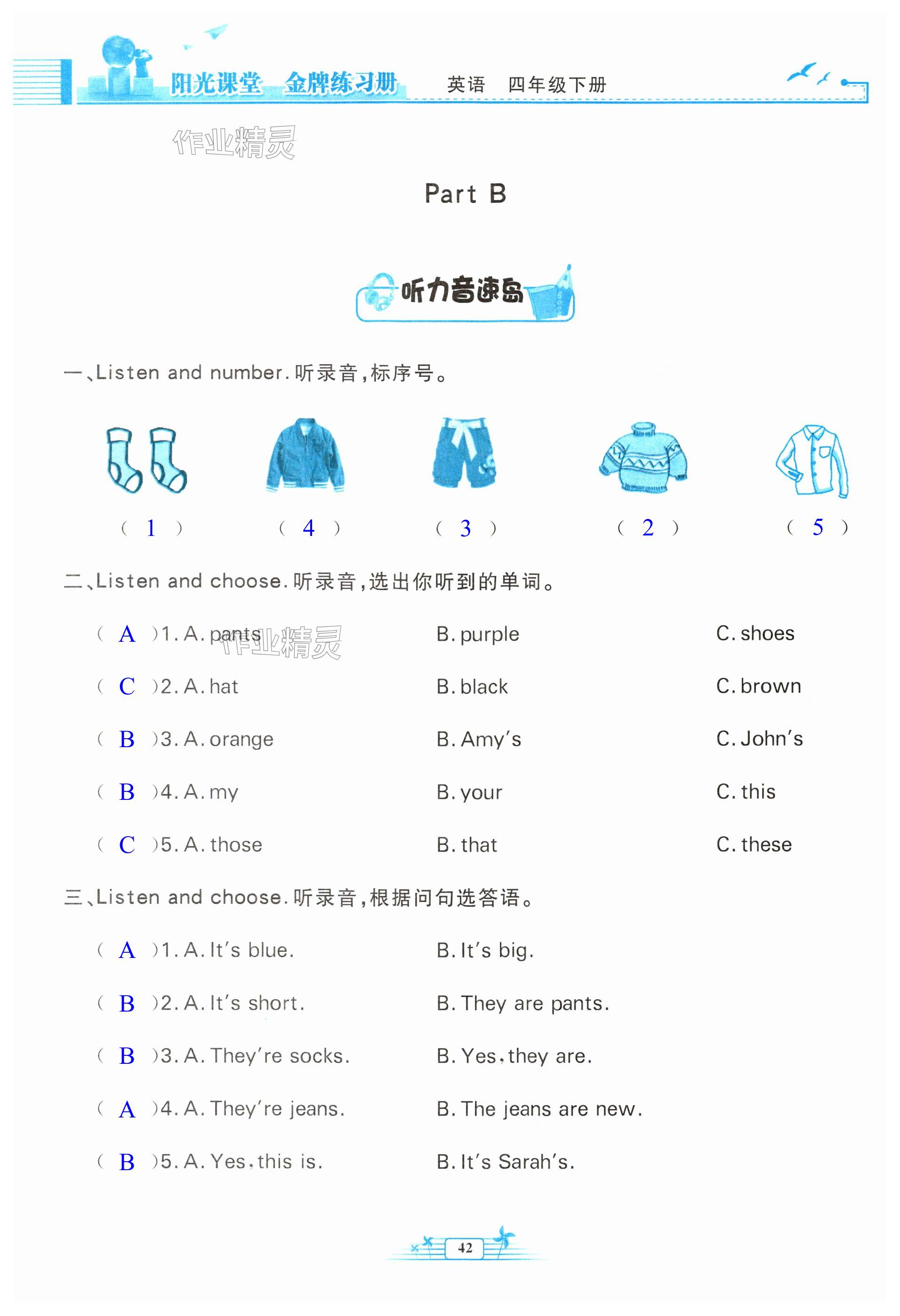 注:目前有些书本章节名称可能整理的还不是很完善,但都是按照顺序排列的,请同学们按照顺序仔细查找。练习册 2024年阳光课堂金牌练习册四年级英语下册人教版 答案主要是用来给同学们做完题方便对答案用的,请勿直接抄袭。
