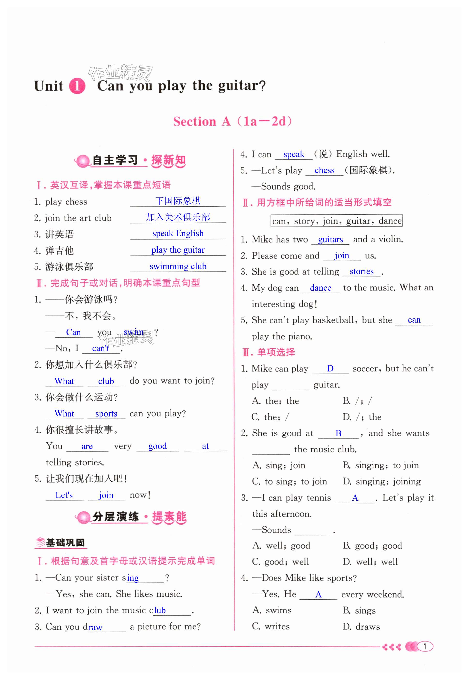 注:目前有些书本章节名称可能整理的还不是很完善,但都是按照顺序排列的,请同学们按照顺序仔细查找。练习册 2024年课时练人民教育出版社七年级英语下册人教版 答案主要是用来给同学们做完题方便对答案用的,请勿直接抄袭。