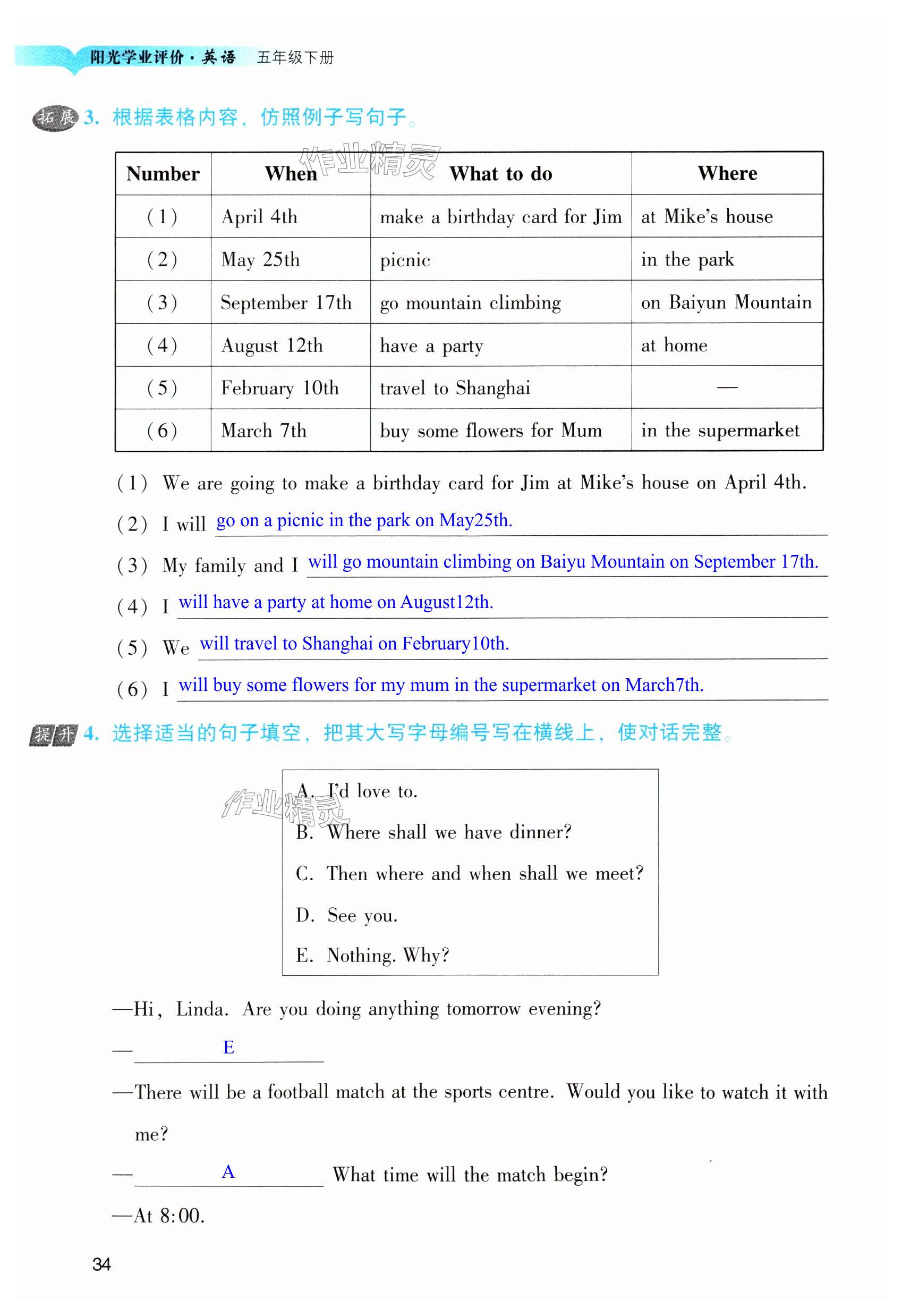 注:目前有些书本章节名称可能整理的还不是很完善,但都是按照顺序排列的,请同学们按照顺序仔细查找。练习册 2024年阳光学业评价五年级英语下册教科版 答案主要是用来给同学们做完题方便对答案用的,请勿直接抄袭。
