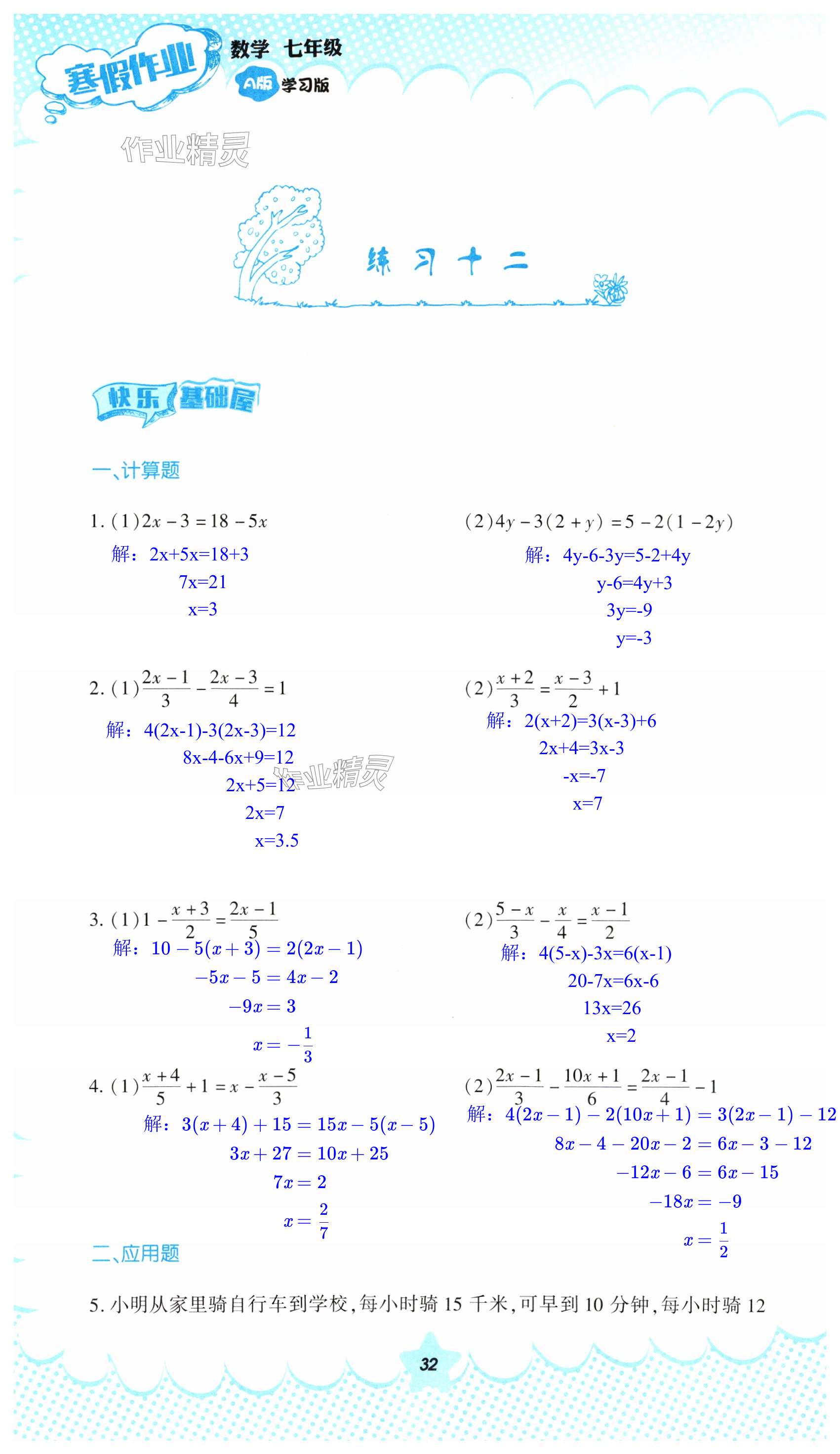注:目前有些书本章节名称可能整理的还不是很完善,但都是按照顺序排列的,请同学们按照顺序仔细查找。练习册 2024年寒假作业教育科学出版社七年级数学人教版 答案主要是用来给同学们做完题方便对答案用的,请勿直接抄袭。