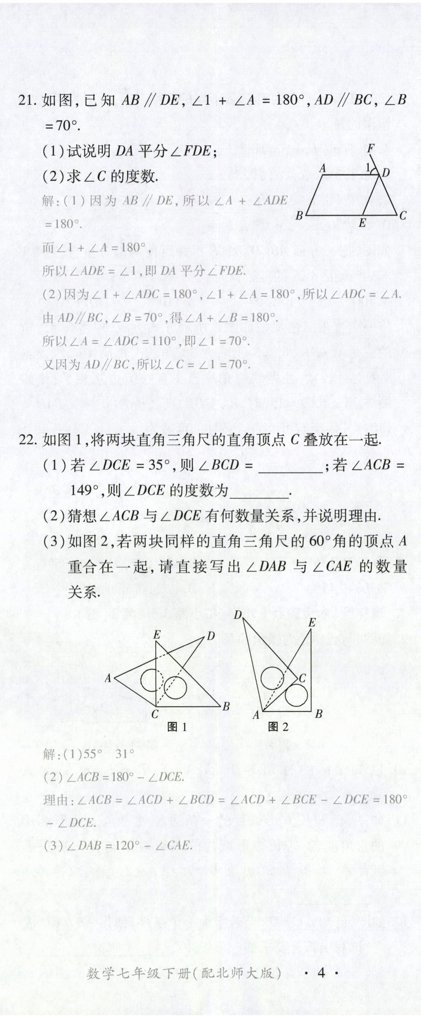 注:目前有些书本章节名称可能整理的还不是很完善,但都是按照顺序排列的,请同学们按照顺序仔细查找。练习册 2024年一课一练创新练习七年级数学下册北师大版 答案主要是用来给同学们做完题方便对答案用的,请勿直接抄袭。