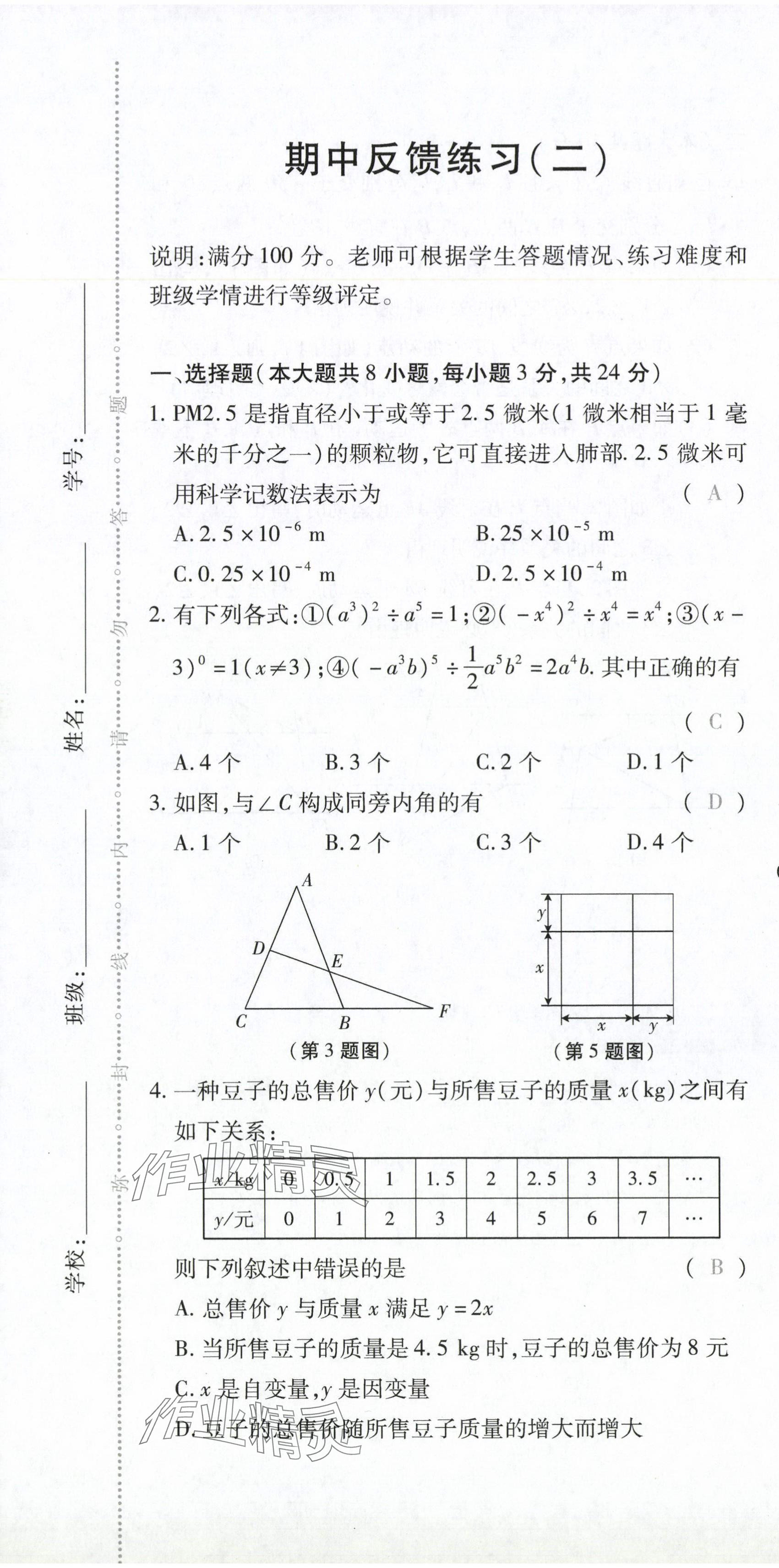 注:目前有些书本章节名称可能整理的还不是很完善,但都是按照顺序排列的,请同学们按照顺序仔细查找。练习册 2024年一课一练创新练习七年级数学下册北师大版 答案主要是用来给同学们做完题方便对答案用的,请勿直接抄袭。