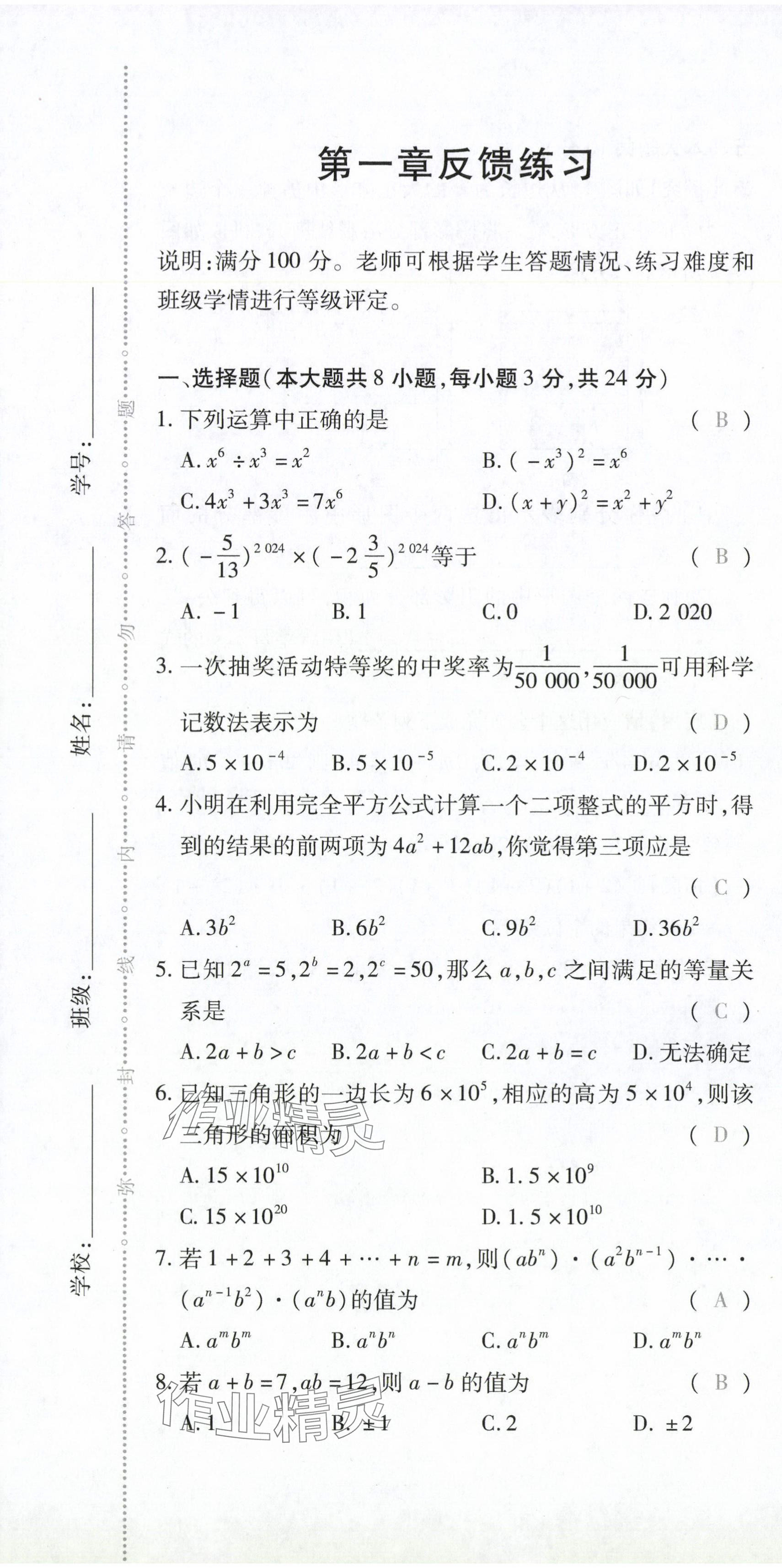 注:目前有些书本章节名称可能整理的还不是很完善,但都是按照顺序排列的,请同学们按照顺序仔细查找。练习册 2024年一课一练创新练习七年级数学下册北师大版 答案主要是用来给同学们做完题方便对答案用的,请勿直接抄袭。