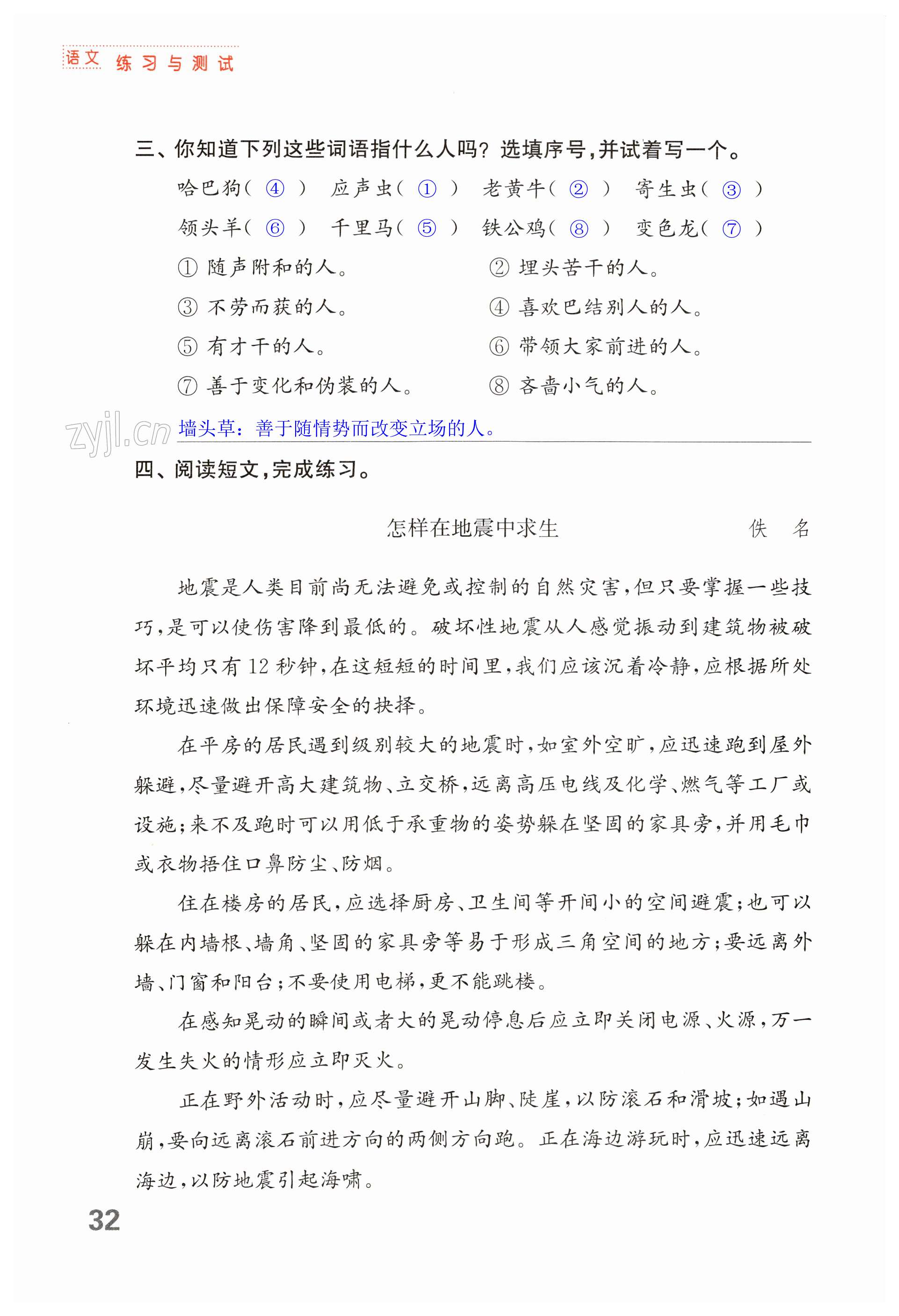 注:目前有些书本章节名称可能整理的还不是很完善,但都是按照顺序排列的,请同学们按照顺序仔细查找。练习册 2024年练习与测试四年级语文下册人教版福建专版 答案主要是用来给同学们做完题方便对答案用的,请勿直接抄袭。