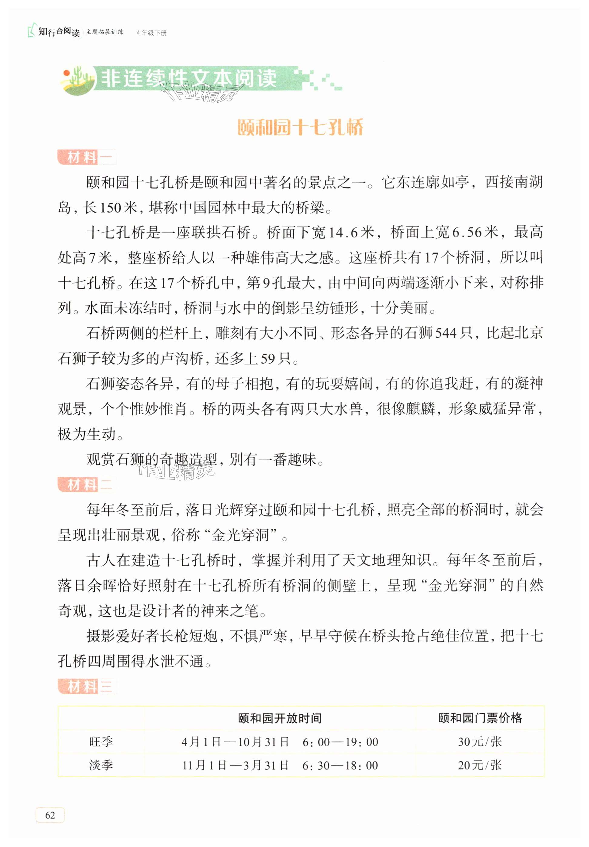 注:目前有些书本章节名称可能整理的还不是很完善,但都是按照顺序排列的,请同学们按照顺序仔细查找。练习册 2024年知行合阅读主题拓展训练四年级语文下册人教版 答案主要是用来给同学们做完题方便对答案用的,请勿直接抄袭。