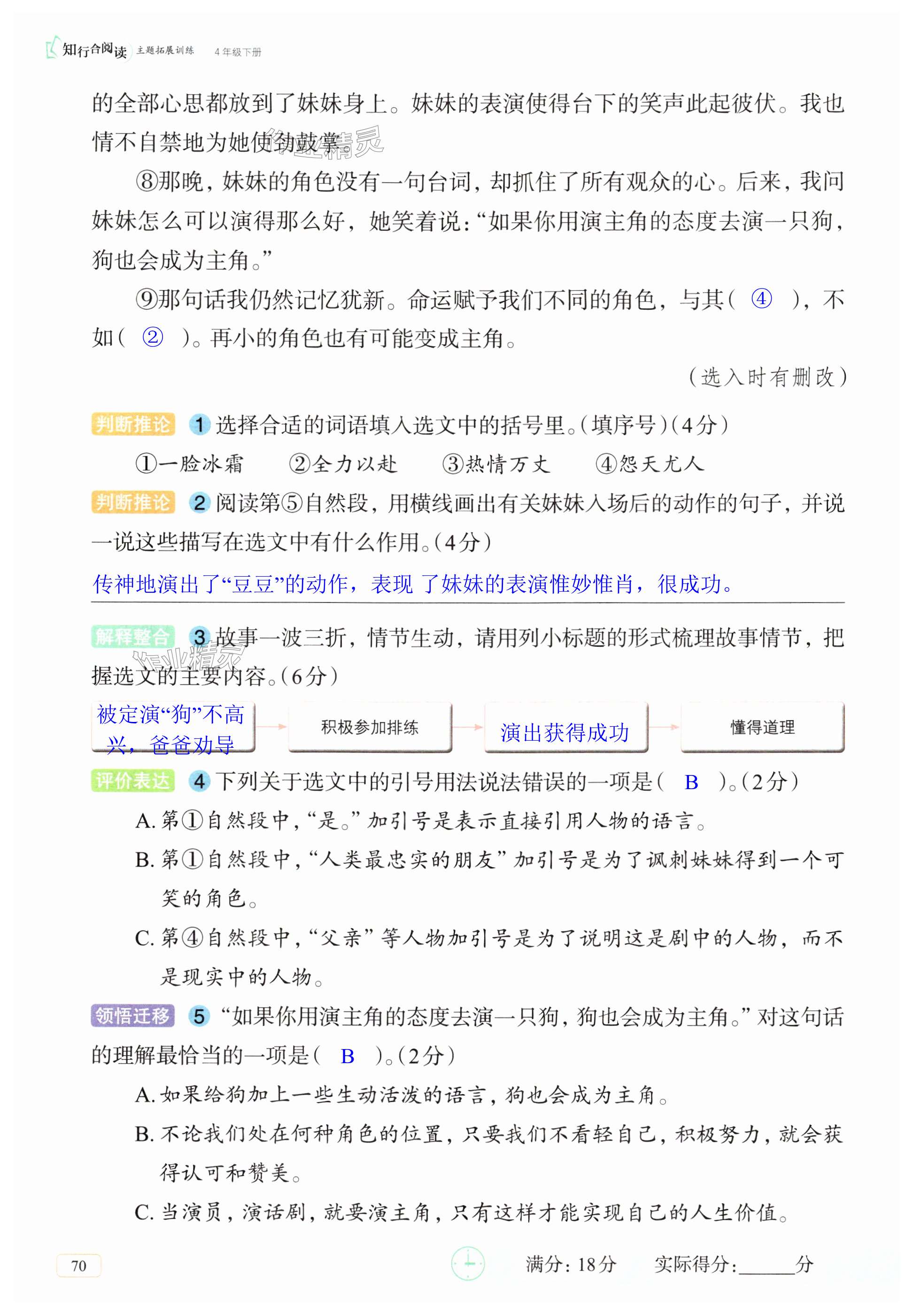 2024年知行合阅读主题拓展训练四年级语文下册人教版