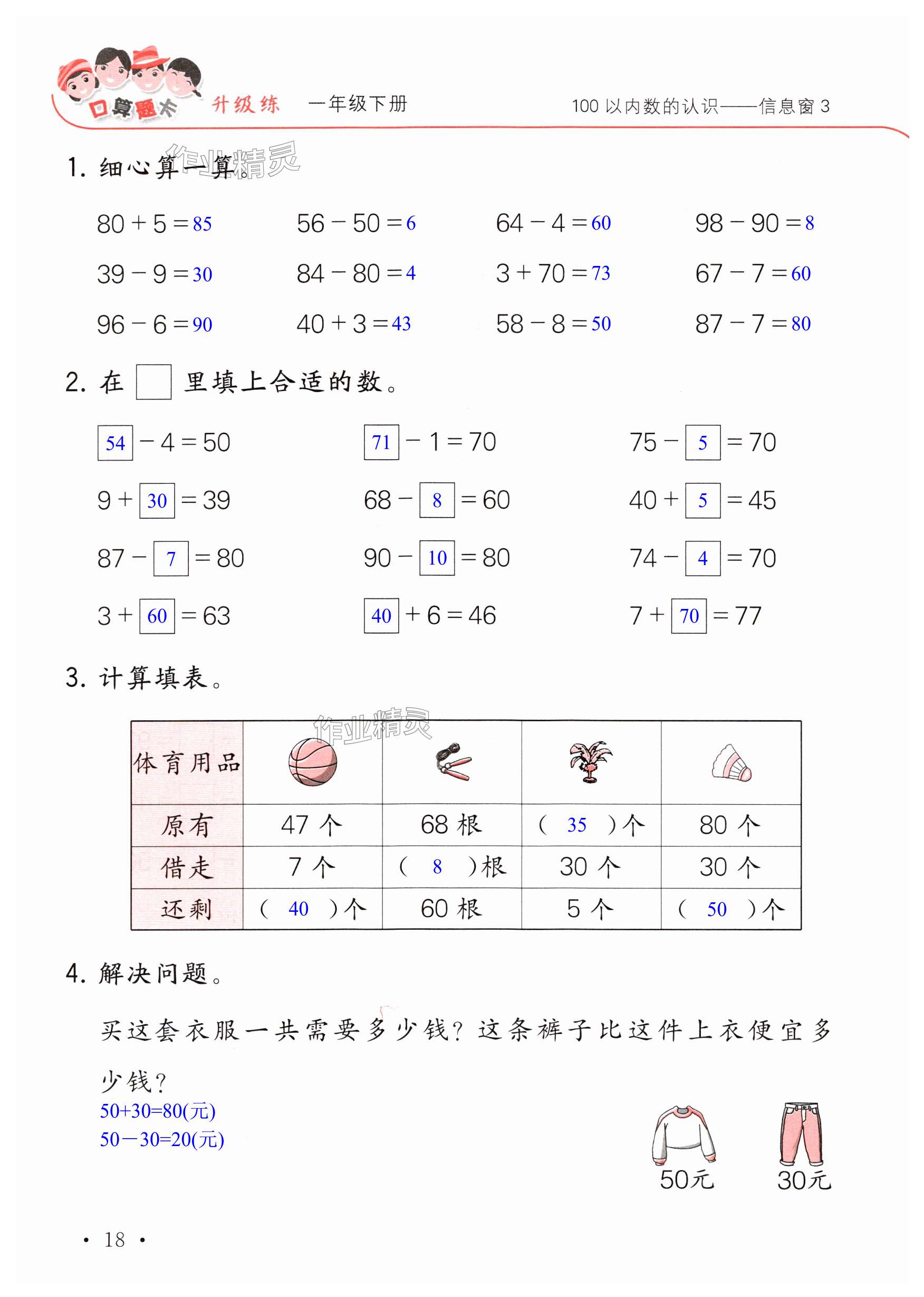 注:目前有些书本章节名称可能整理的还不是很完善,但都是按照顺序排列的,请同学们按照顺序仔细查找。练习册 2024年口算题卡升级练一年级数学下册青岛版 答案主要是用来给同学们做完题方便对答案用的,请勿直接抄袭。