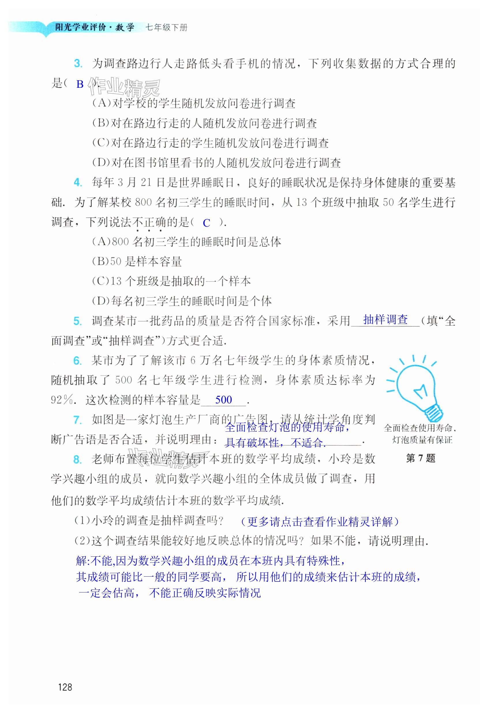 注:目前有些书本章节名称可能整理的还不是很完善,但都是按照顺序排列的,请同学们按照顺序仔细查找。练习册 2024年阳光学业评价七年级数学下册人教版 答案主要是用来给同学们做完题方便对答案用的,请勿直接抄袭。
