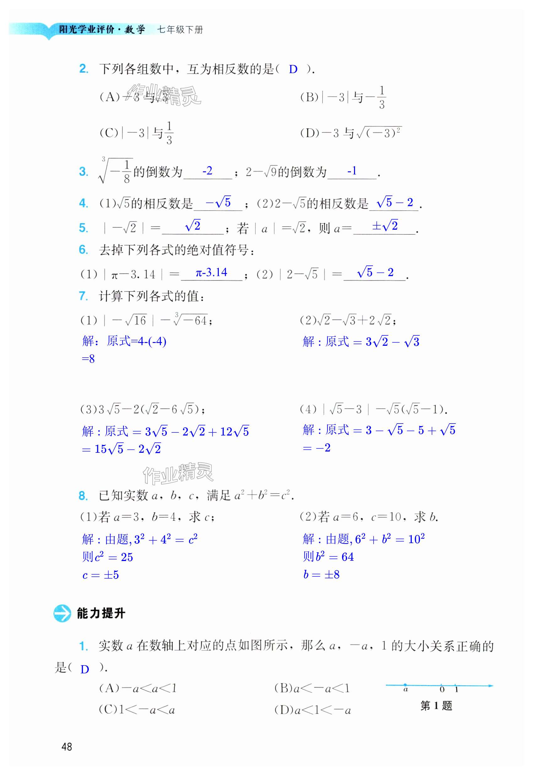 注:目前有些书本章节名称可能整理的还不是很完善,但都是按照顺序排列的,请同学们按照顺序仔细查找。练习册 2024年阳光学业评价七年级数学下册人教版 答案主要是用来给同学们做完题方便对答案用的,请勿直接抄袭。