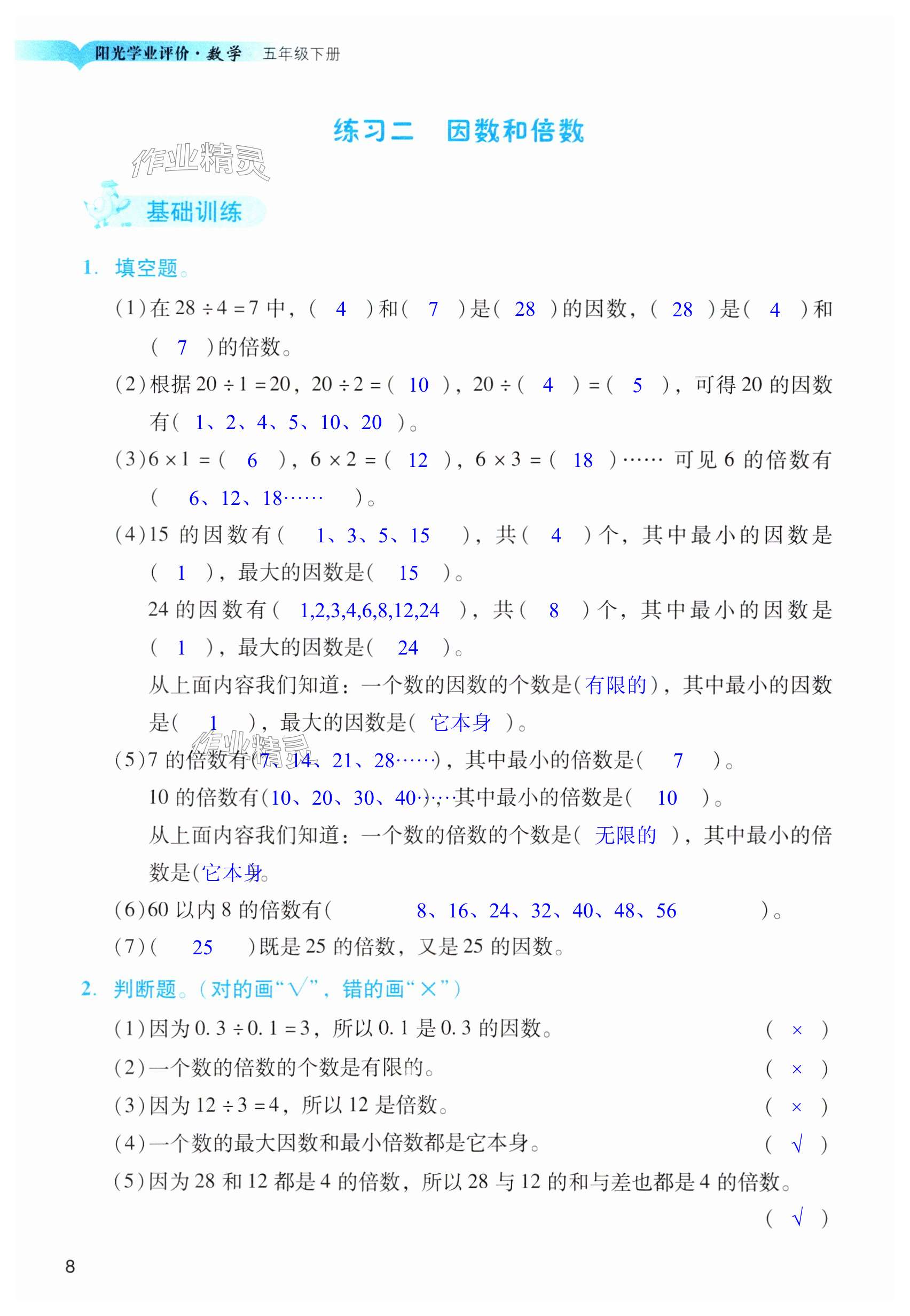 注:目前有些书本章节名称可能整理的还不是很完善,但都是按照顺序排列的,请同学们按照顺序仔细查找。练习册 2024年阳光学业评价五年级数学下册人教版 答案主要是用来给同学们做完题方便对答案用的,请勿直接抄袭。