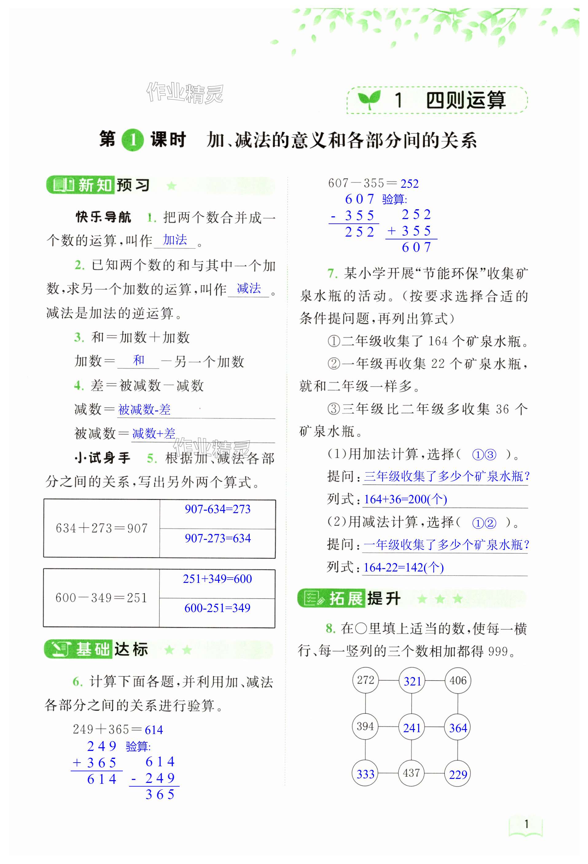 注:目前有些书本章节名称可能整理的还不是很完善,但都是按照顺序排列的,请同学们按照顺序仔细查找。练习册2024年新课程学习与测评同步学习四年级数学下册人教版答案主要是用来给同学们做完题方便对答案用的,请勿直接抄袭。