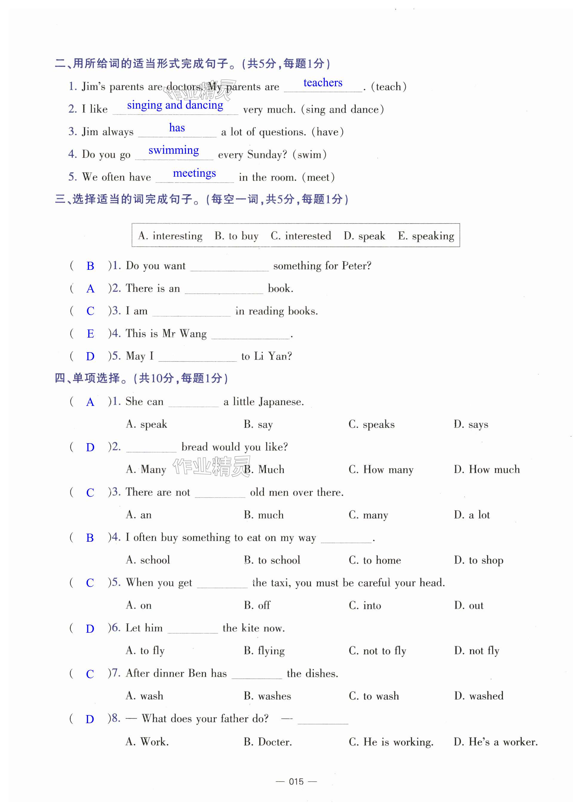 注:目前有些书本章节名称可能整理的还不是很完善,但都是按照顺序排列的,请同学们按照顺序仔细查找。练习册 2024年学习质量监测五年级英语下册人教版 答案主要是用来给同学们做完题方便对答案用的,请勿直接抄袭。