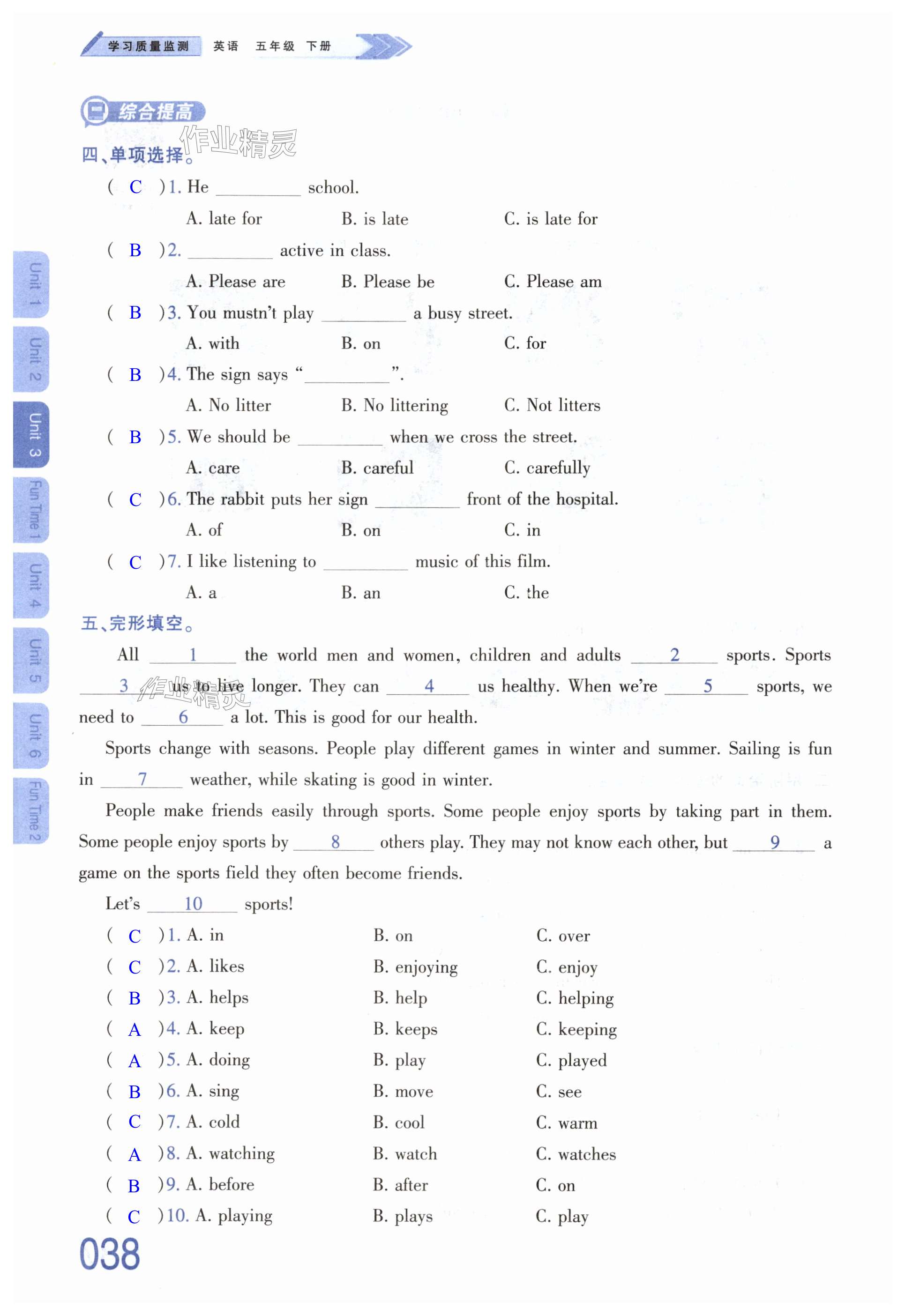 注:目前有些书本章节名称可能整理的还不是很完善,但都是按照顺序排列的,请同学们按照顺序仔细查找。练习册 2024年学习质量监测五年级英语下册人教版 答案主要是用来给同学们做完题方便对答案用的,请勿直接抄袭。