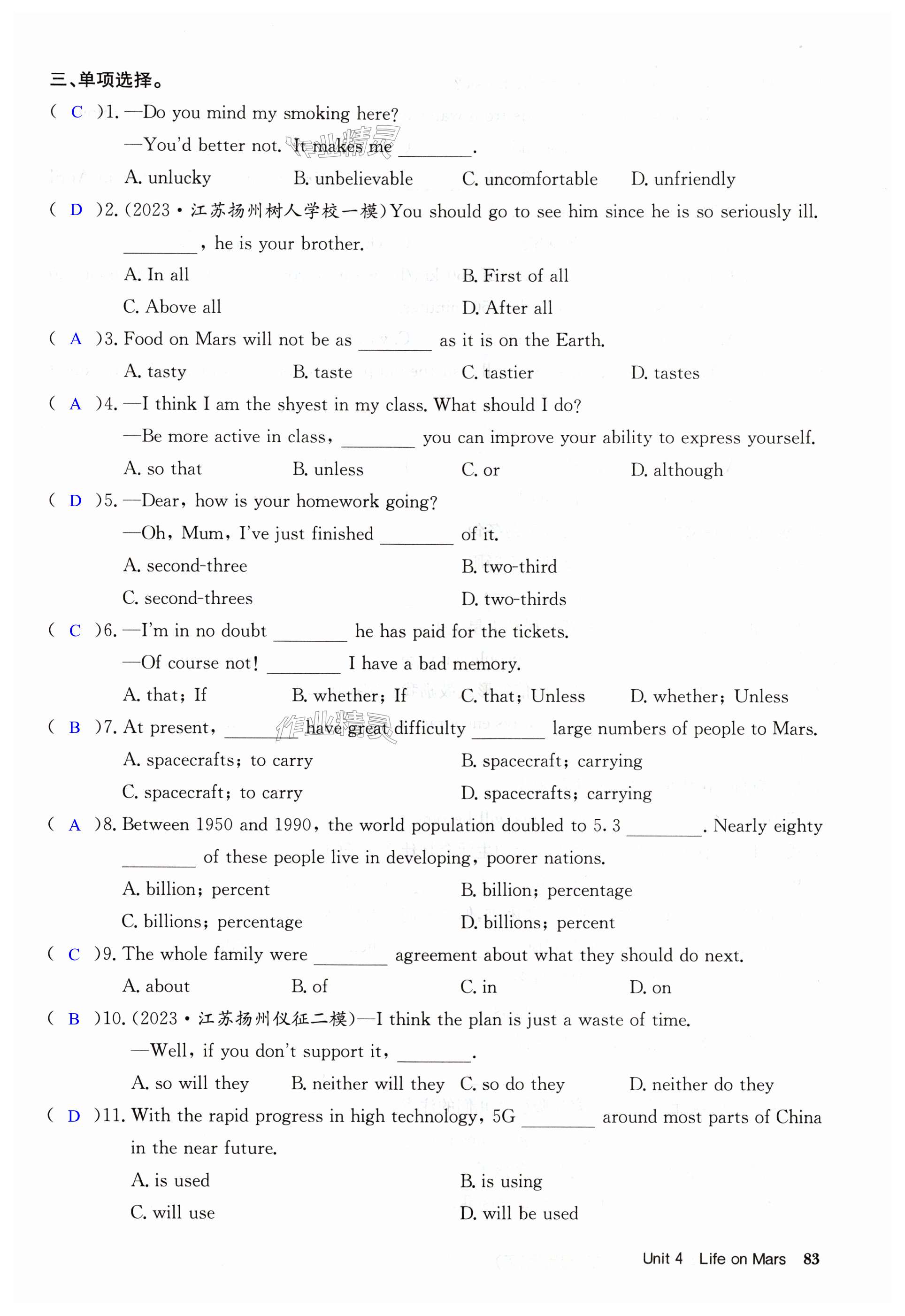 注:目前有些书本章节名称可能整理的还不是很完善,但都是按照顺序排列的,请同学们按照顺序仔细查找。练习册 2024年启东中学作业本九年级英语下册译林版淮安专版 答案主要是用来给同学们做完题方便对答案用的,请勿直接抄袭。