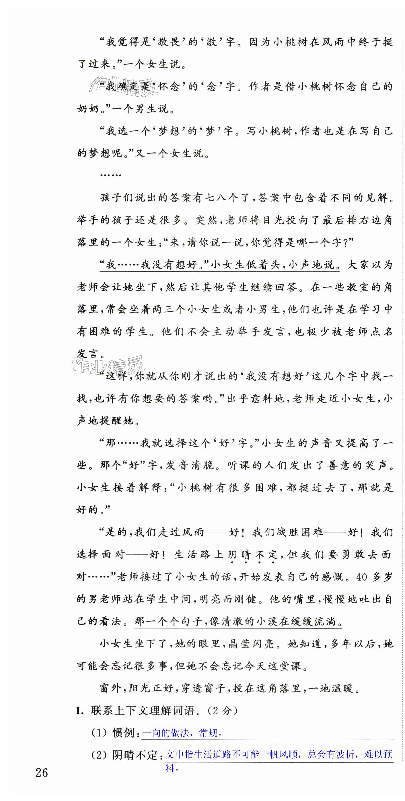 注:目前有些书本章节名称可能整理的还不是很完善,但都是按照顺序排列的,请同学们按照顺序仔细查找。练习册 2024年阳光互动绿色成长空间六年级语文下册提优版 答案主要是用来给同学们做完题方便对答案用的,请勿直接抄袭。