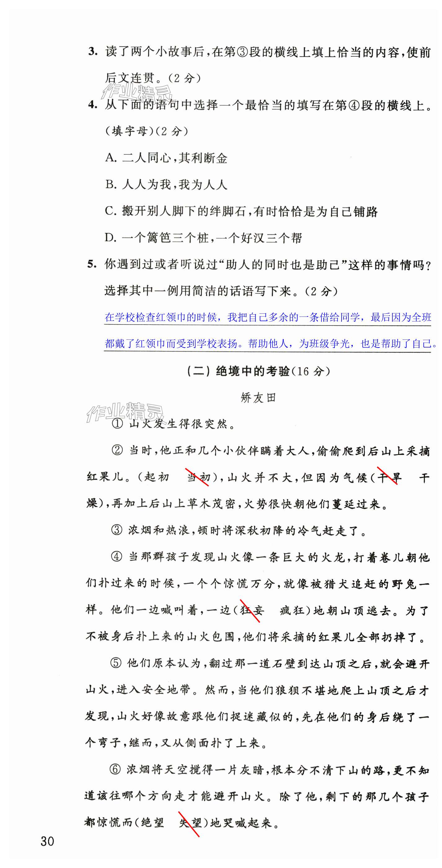 注:目前有些书本章节名称可能整理的还不是很完善,但都是按照顺序排列的,请同学们按照顺序仔细查找。练习册 2024年阳光互动绿色成长空间六年级语文下册提优版 答案主要是用来给同学们做完题方便对答案用的,请勿直接抄袭。