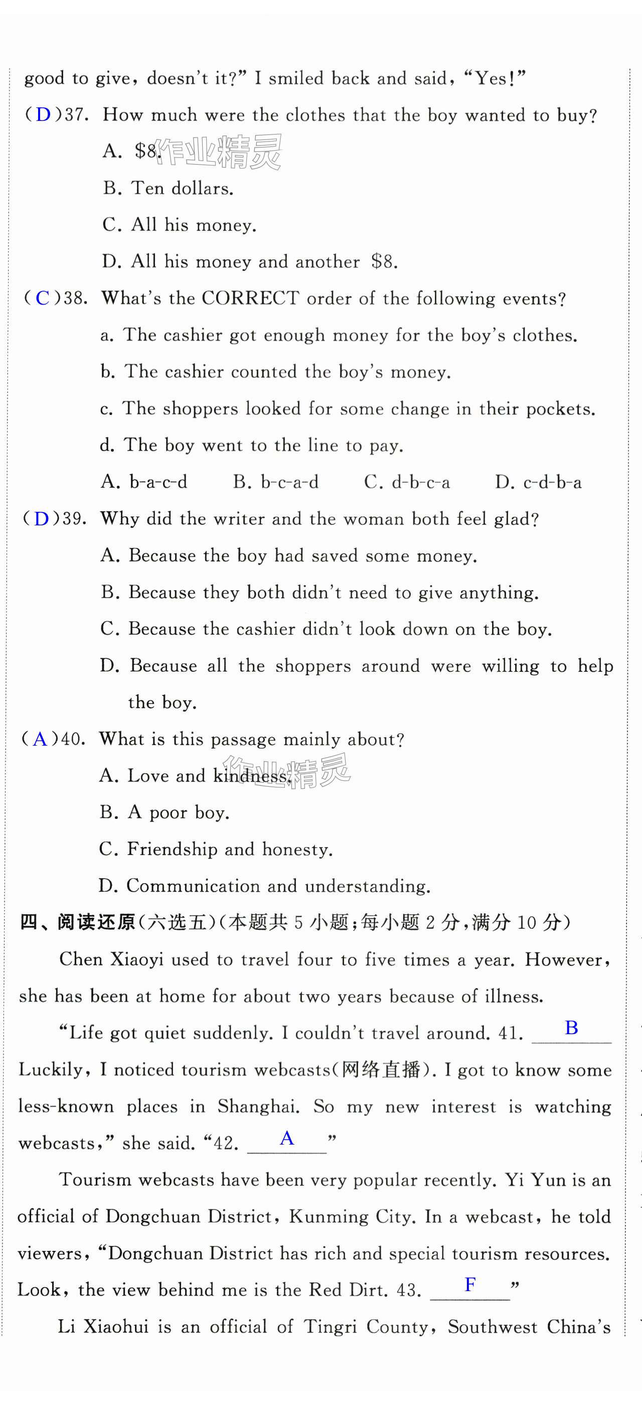 注:目前有些书本章节名称可能整理的还不是很完善,但都是按照顺序排列的,请同学们按照顺序仔细查找。练习册 2024年阳光互动绿色成长空间八年级英语下册提优版 答案主要是用来给同学们做完题方便对答案用的,请勿直接抄袭。