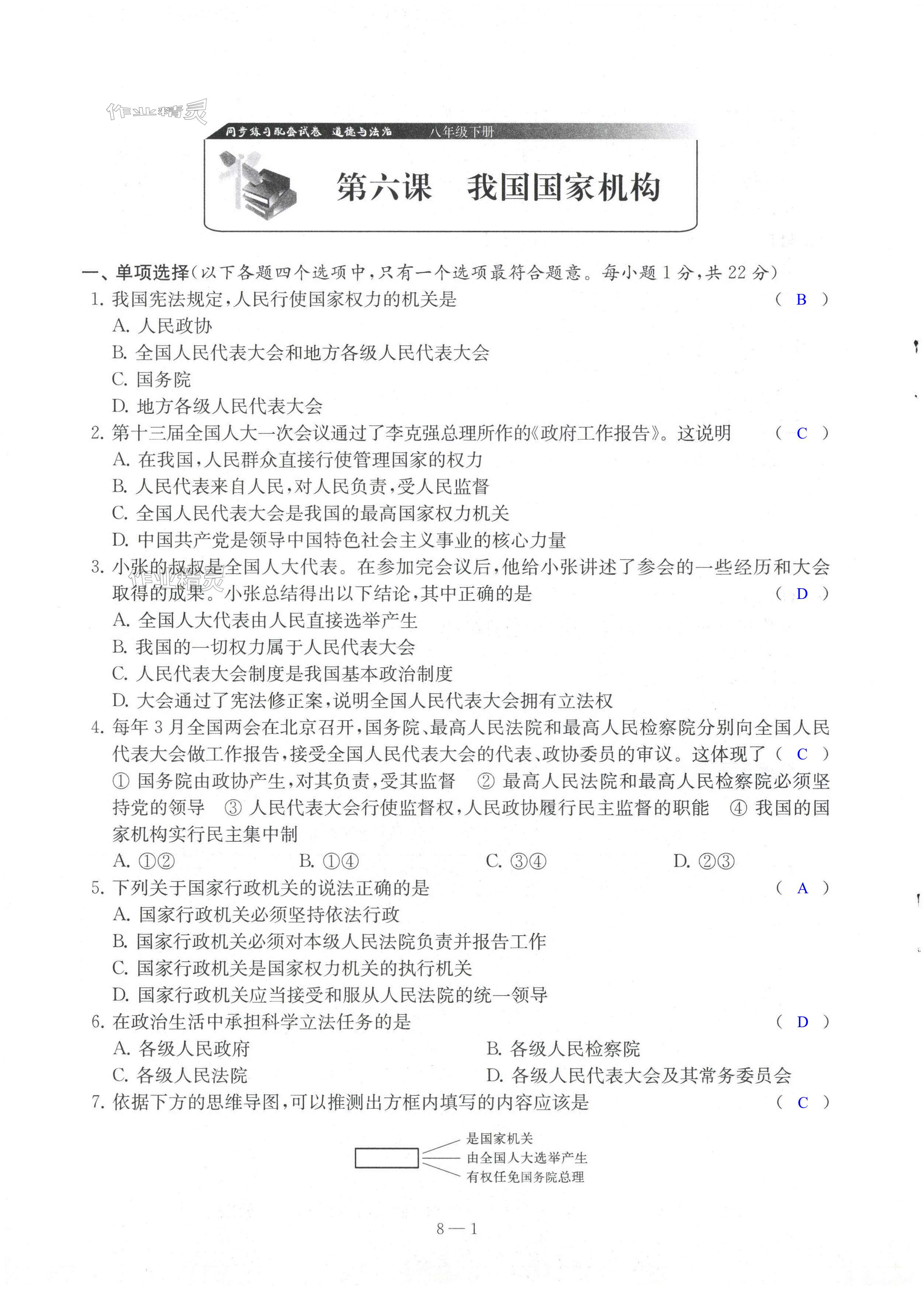 注:目前有些书本章节名称可能整理的还不是很完善,但都是按照顺序排列的,请同学们按照顺序仔细查找。练习册 2024年同步练习配套试卷八年级道德与法治下册人教版 答案主要是用来给同学们做完题方便对答案用的,请勿直接抄袭。