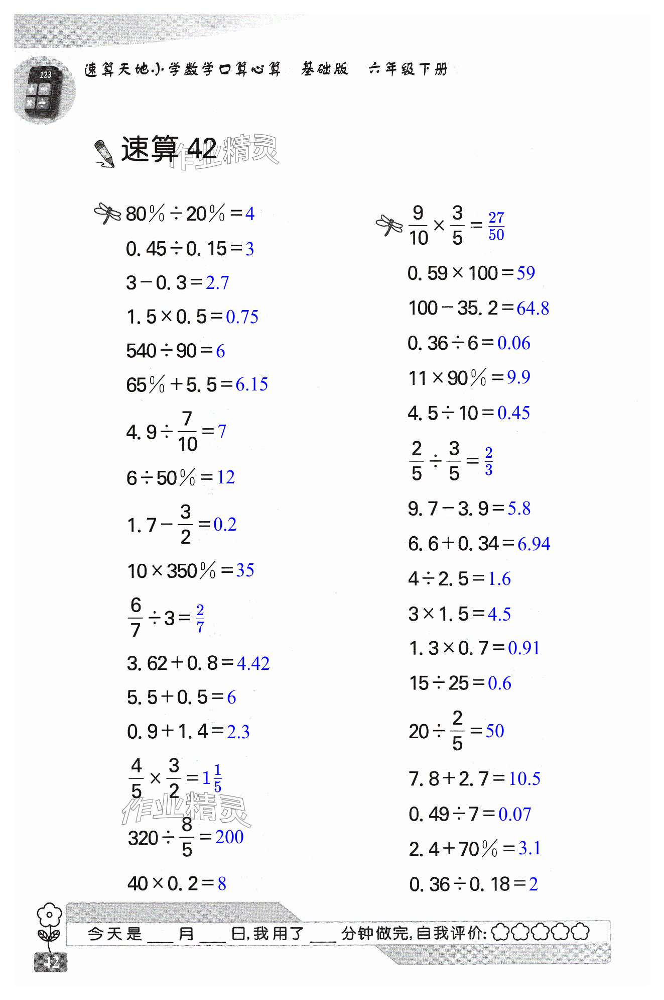 2024年速算天地数学口算心算六年级下册苏教版基础版
