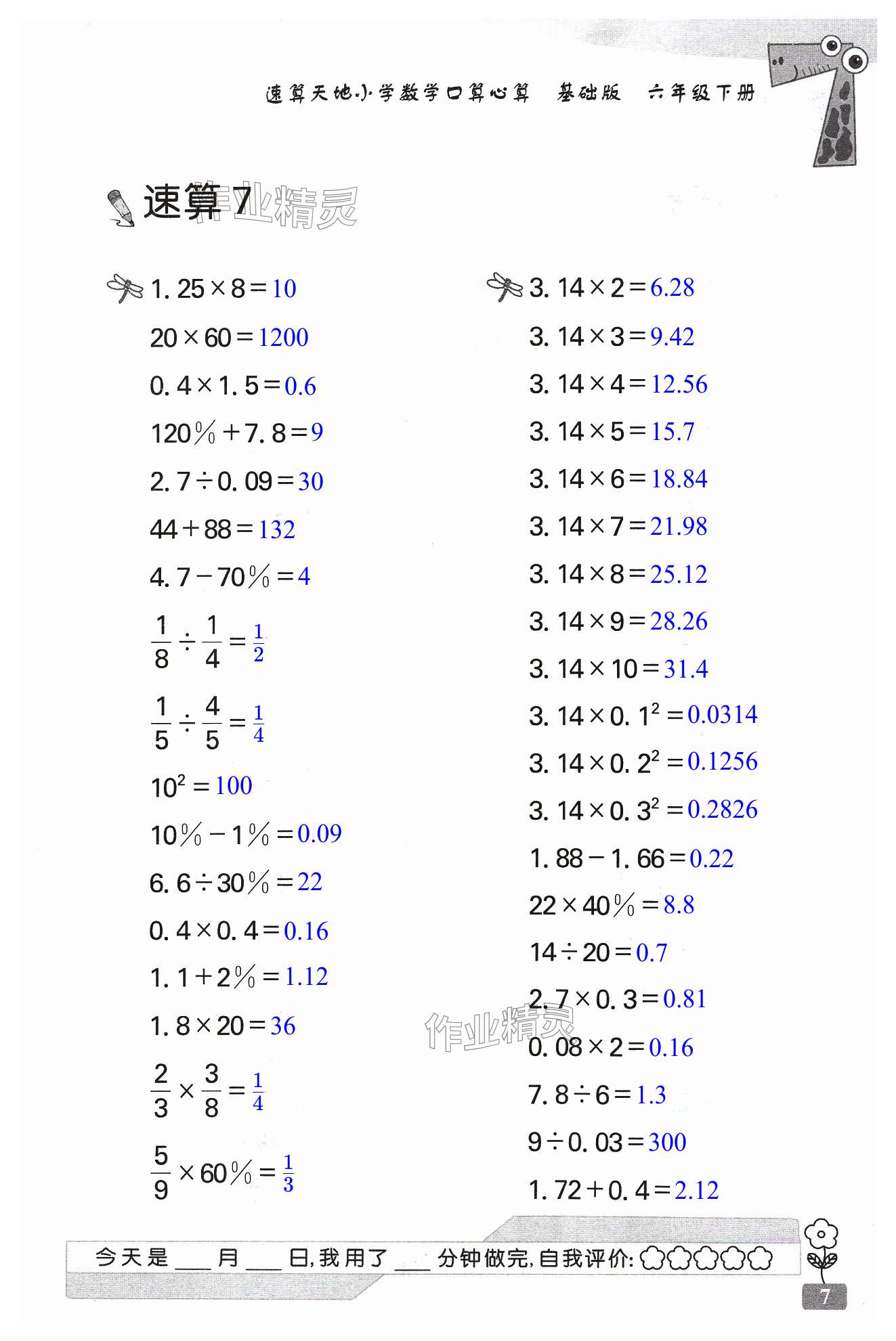 2024年速算天地数学口算心算六年级下册苏教版基础版