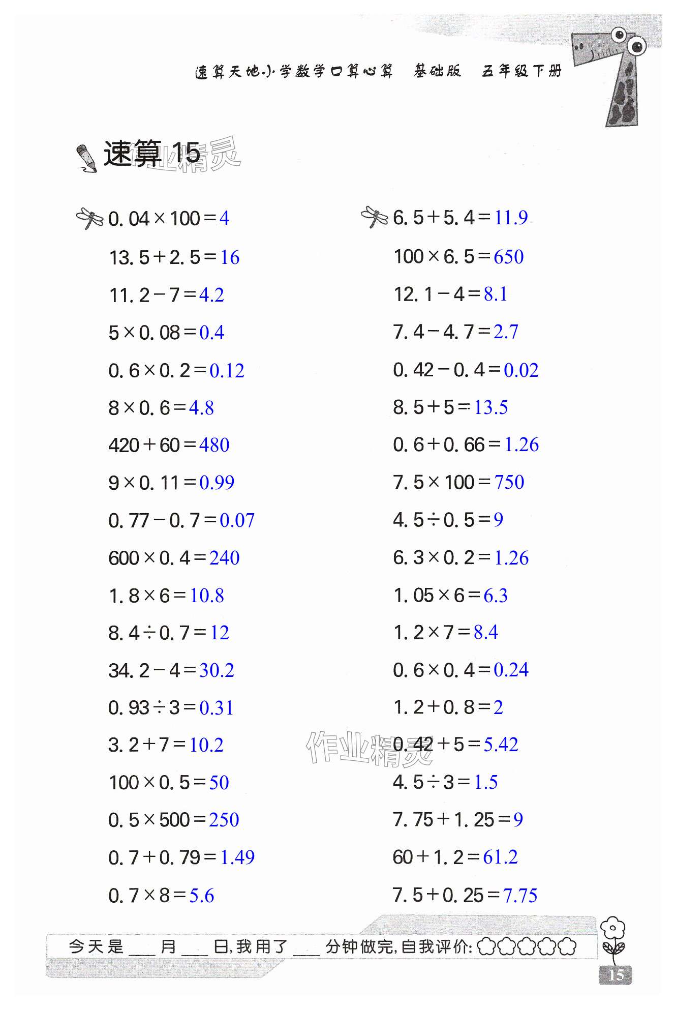 《2024年速算天地数学口算心算五年级数学下册基础版》