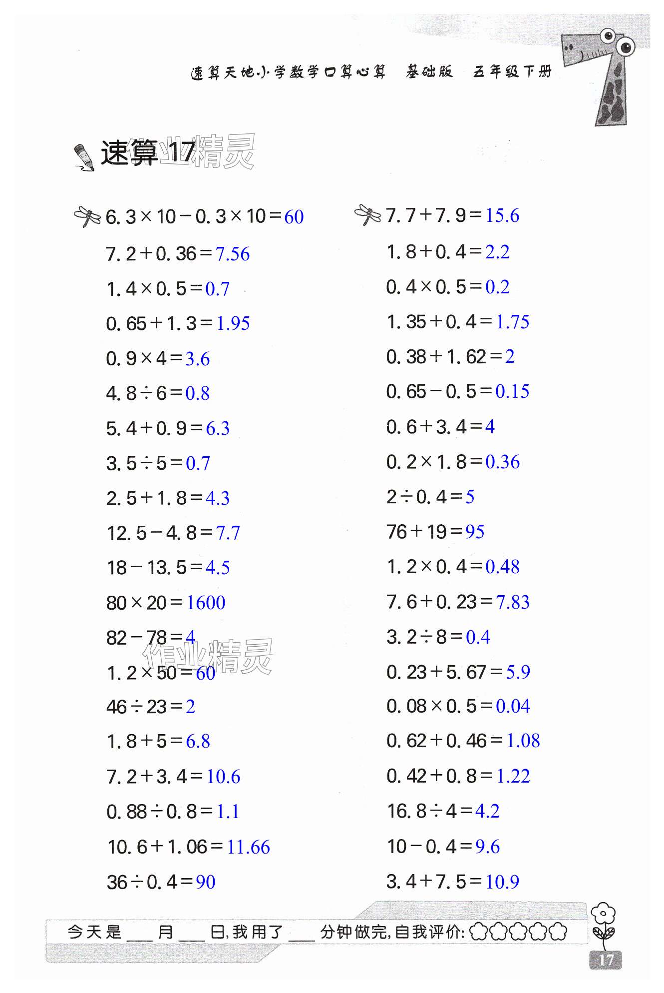 《2024年速算天地数学口算心算五年级数学下册基础版》