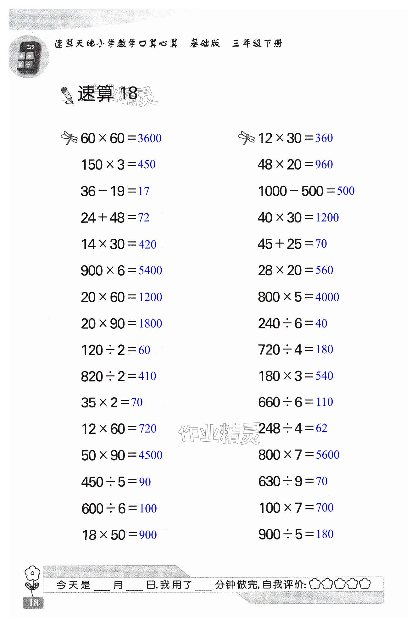 注:目前有些书本章节名称可能整理的还不是很完善,但都是按照顺序排列的,请同学们按照顺序仔细查找。练习册 2024年速算天地数学口算心算三年级下册苏教版基础版 答案主要是用来给同学们做完题方便对答案用的,请勿直接抄袭。