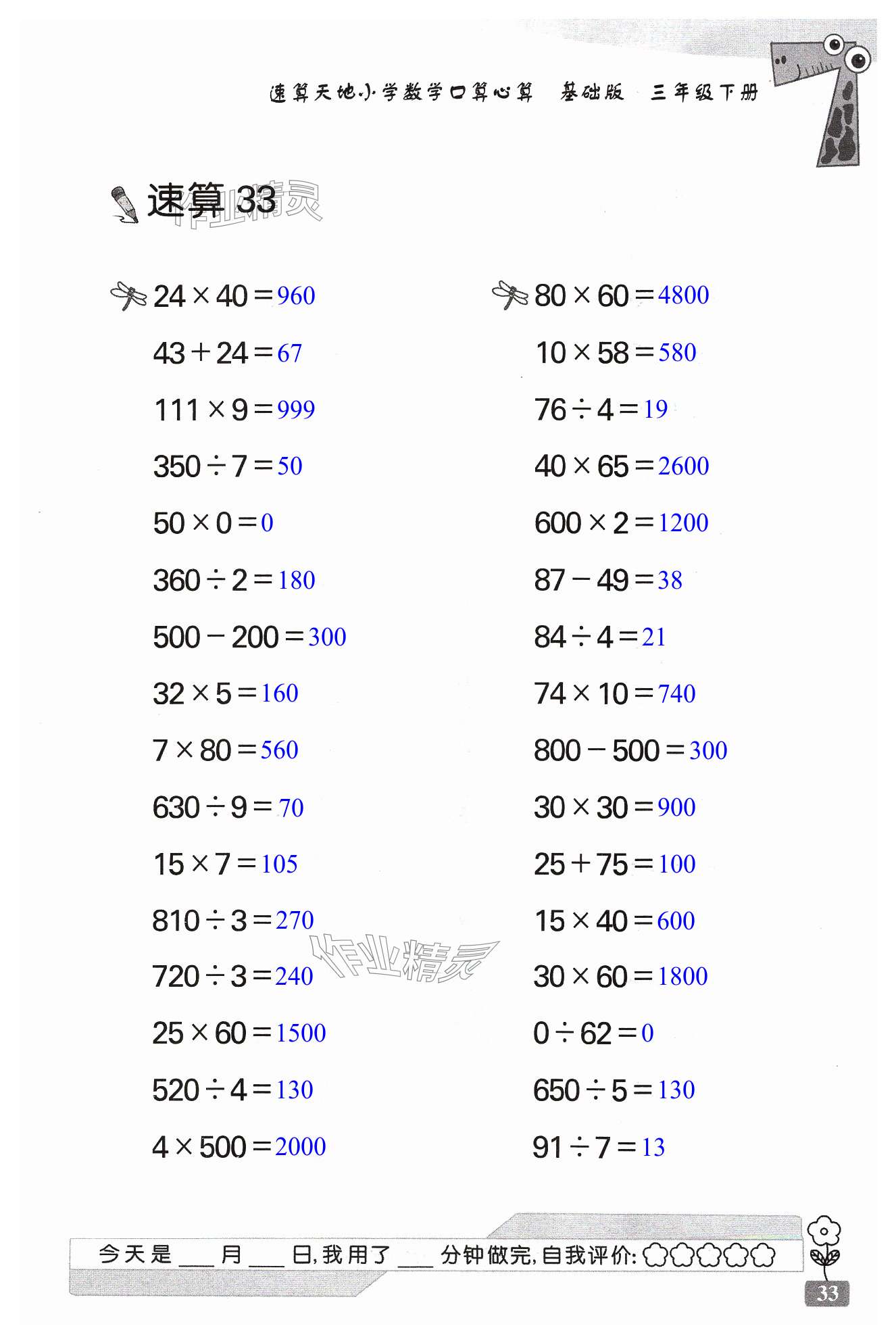 注:目前有些书本章节名称可能整理的还不是很完善,但都是按照顺序排列的,请同学们按照顺序仔细查找。练习册 2024年速算天地数学口算心算三年级下册苏教版基础版 答案主要是用来给同学们做完题方便对答案用的,请勿直接抄袭。