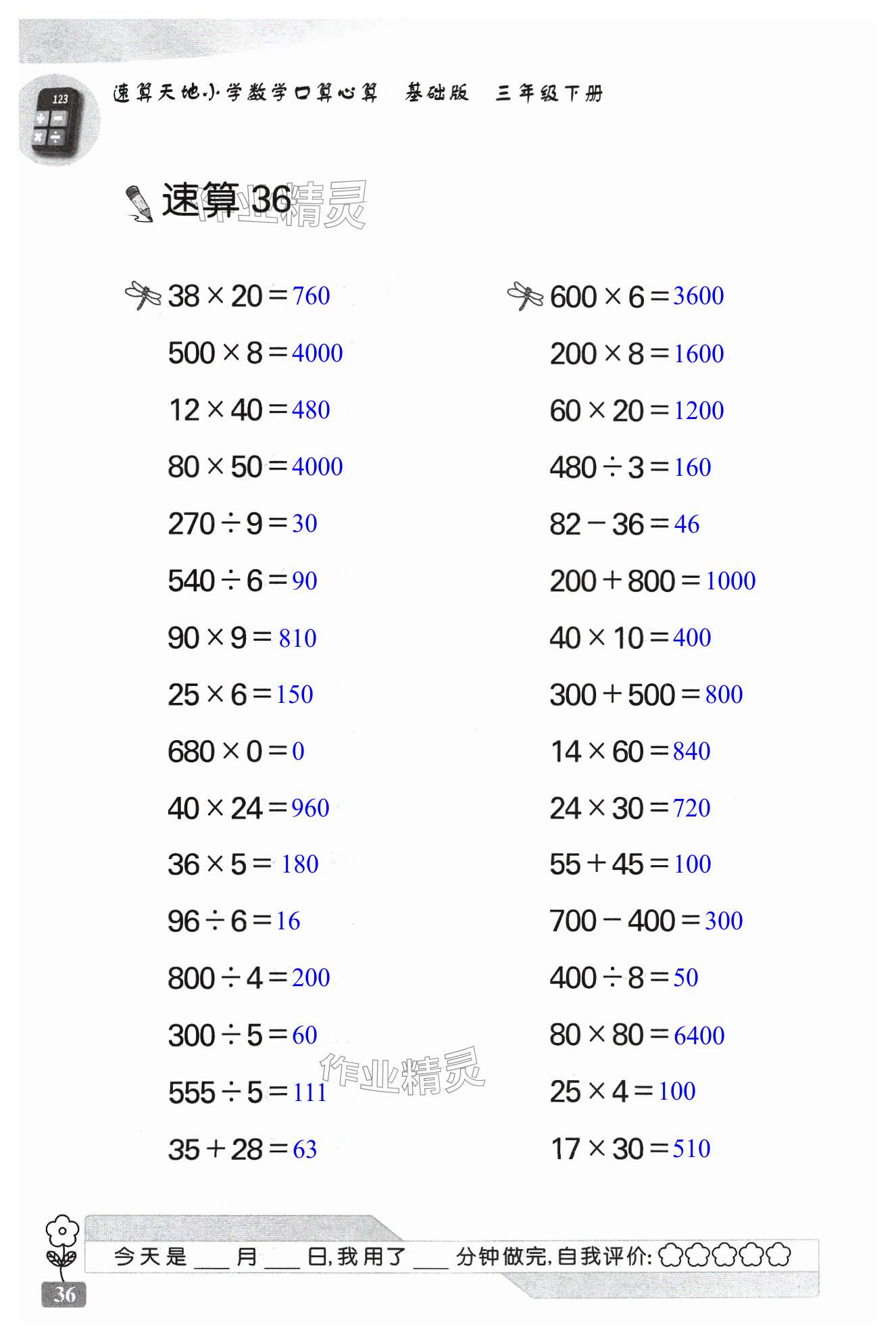 注:目前有些书本章节名称可能整理的还不是很完善,但都是按照顺序排列的,请同学们按照顺序仔细查找。练习册 2024年速算天地数学口算心算三年级下册苏教版基础版 答案主要是用来给同学们做完题方便对答案用的,请勿直接抄袭。