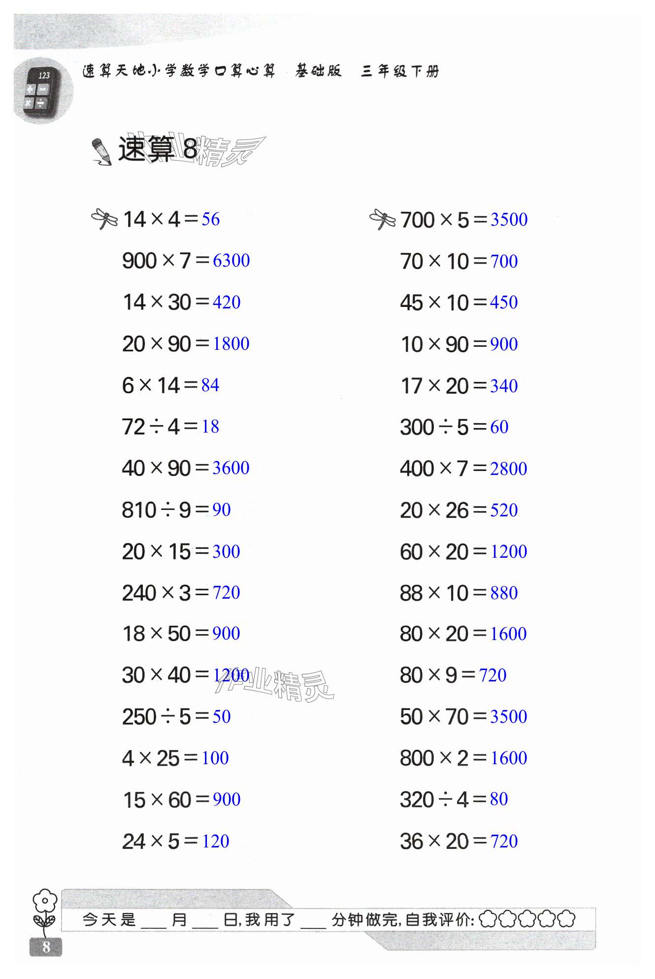 注:目前有些书本章节名称可能整理的还不是很完善,但都是按照顺序排列的,请同学们按照顺序仔细查找。练习册 2024年速算天地数学口算心算三年级下册苏教版基础版 答案主要是用来给同学们做完题方便对答案用的,请勿直接抄袭。
