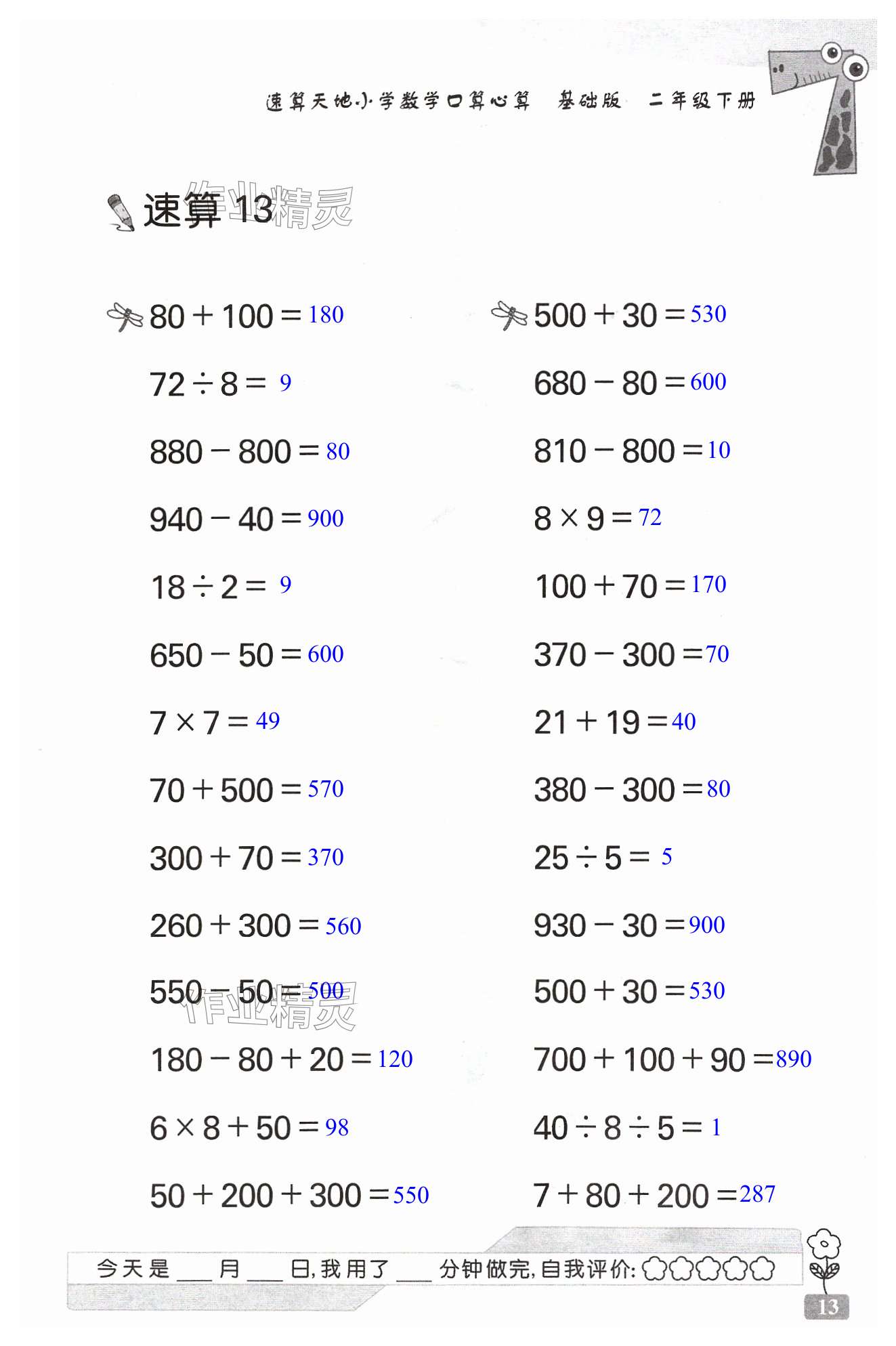 注:目前有些书本章节名称可能整理的还不是很完善,但都是按照顺序排列的,请同学们按照顺序仔细查找。练习册 2024年速算天地数学口算心算二年级下册苏教版基础版 答案主要是用来给同学们做完题方便对答案用的,请勿直接抄袭。