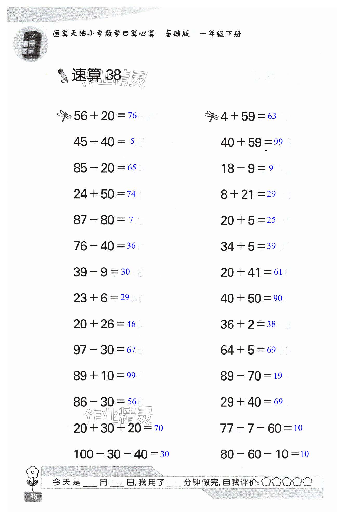 2024年速算天地数学口算心算一年级下册苏教版基础版