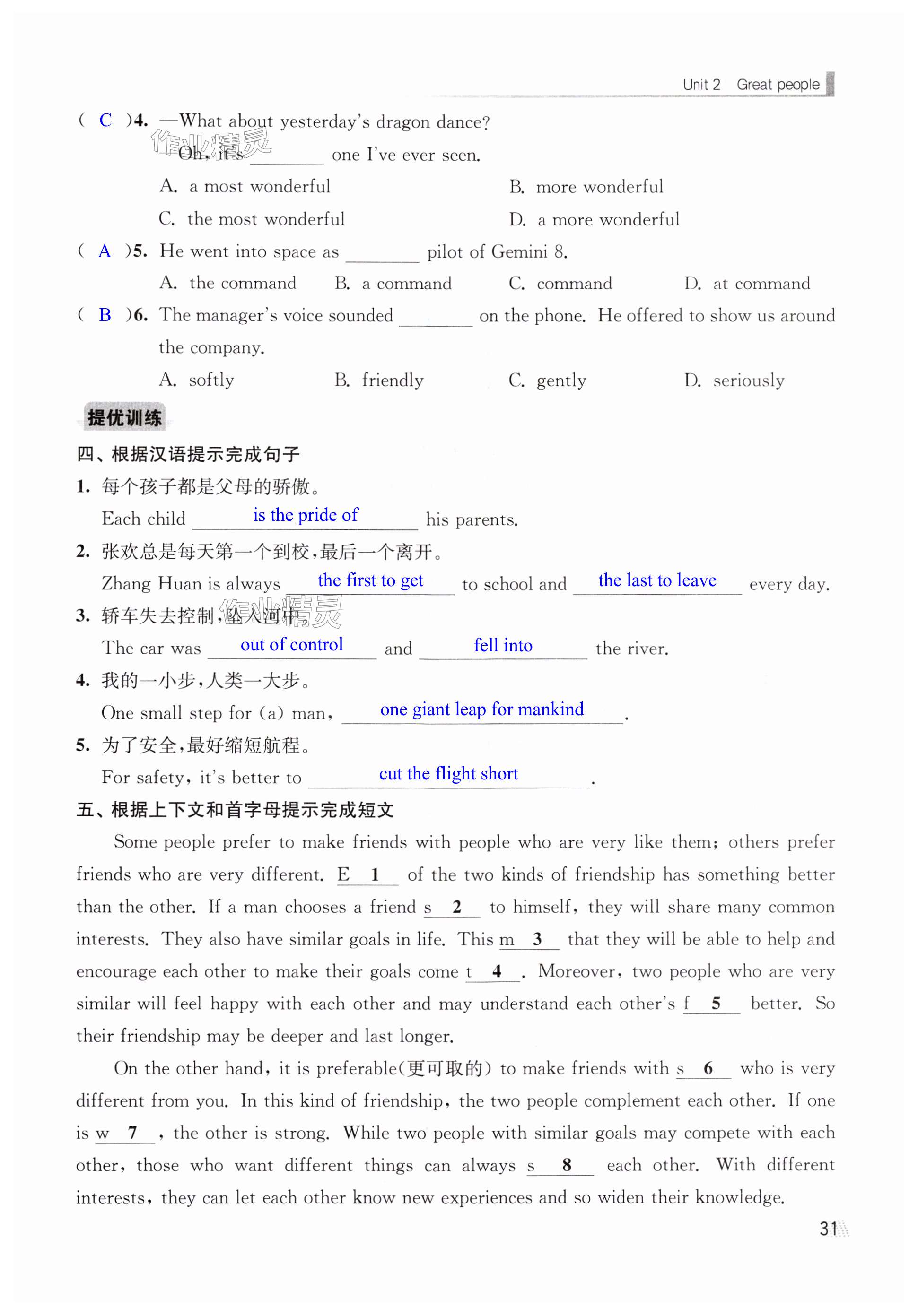 注:目前有些书本章节名称可能整理的还不是很完善,但都是按照顺序排列的,请同学们按照顺序仔细查找。练习册 2024年创新课时作业九年级英语下册译林版 答案主要是用来给同学们做完题方便对答案用的,请勿直接抄袭。