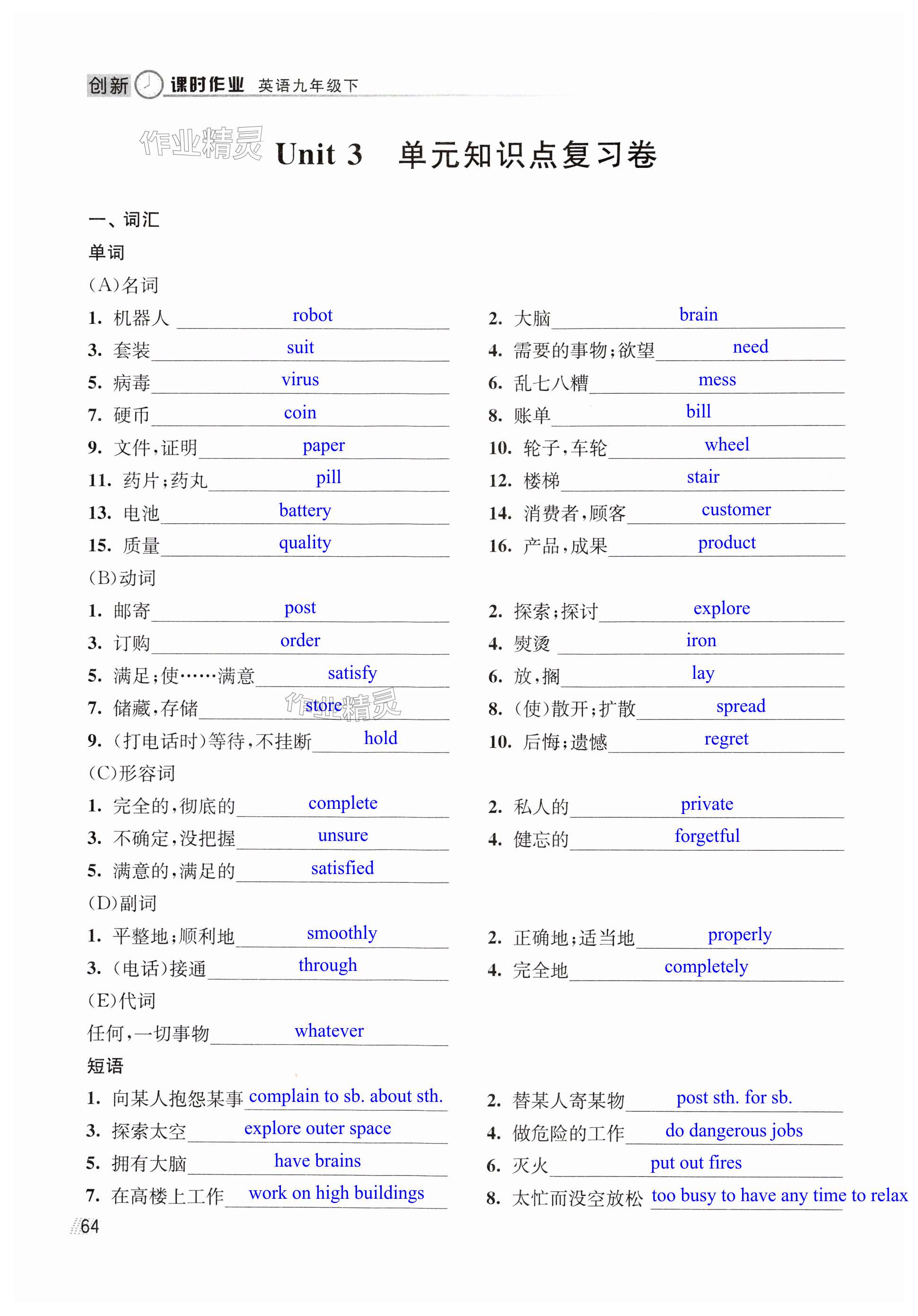 注:目前有些书本章节名称可能整理的还不是很完善,但都是按照顺序排列的,请同学们按照顺序仔细查找。练习册 2024年创新课时作业九年级英语下册译林版 答案主要是用来给同学们做完题方便对答案用的,请勿直接抄袭。