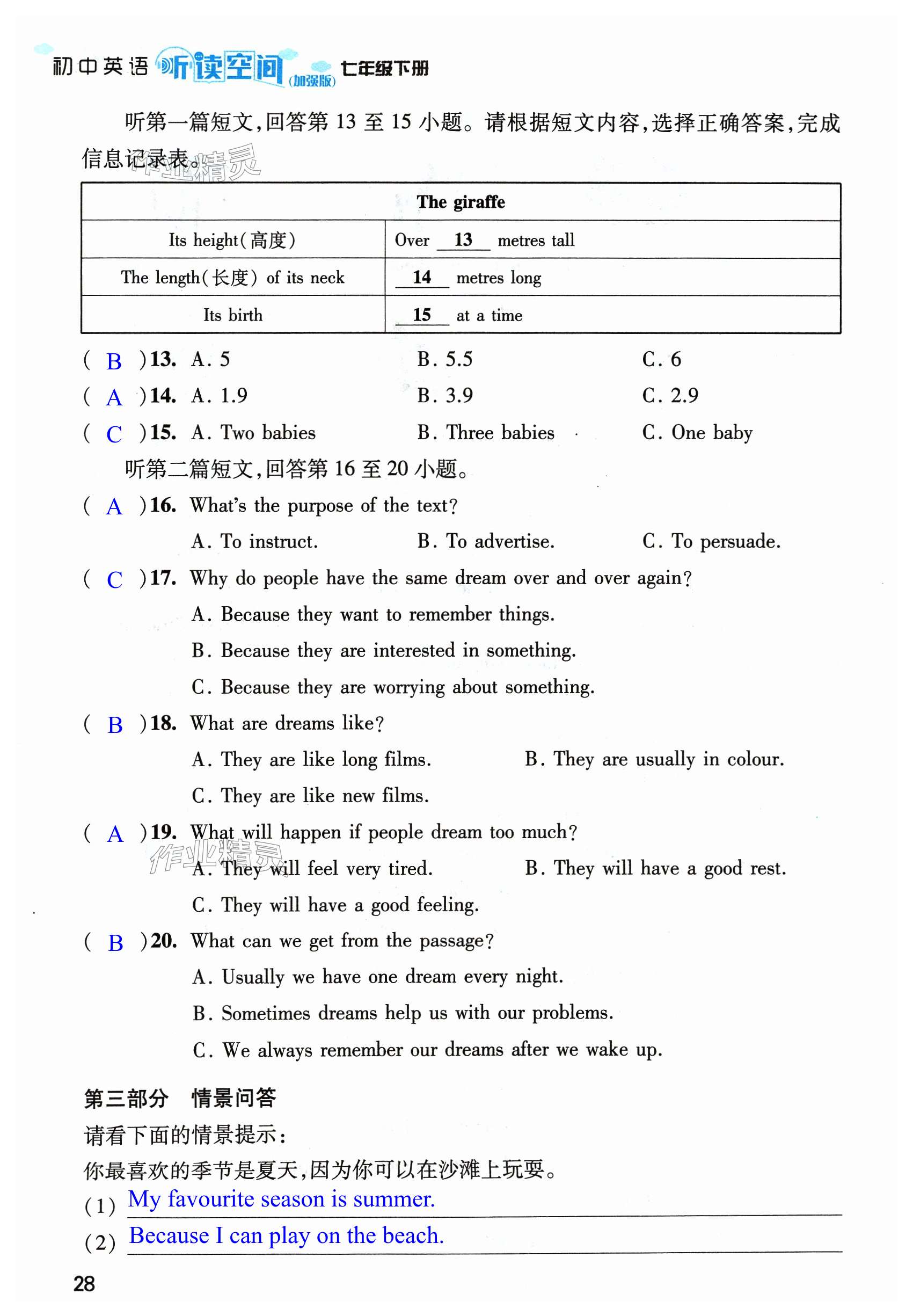 注:目前有些书本章节名称可能整理的还不是很完善,但都是按照顺序排列的,请同学们按照顺序仔细查找。练习册 2024年初中英语听读空间七年级下册译林版加强版 答案主要是用来给同学们做完题方便对答案用的,请勿直接抄袭。
