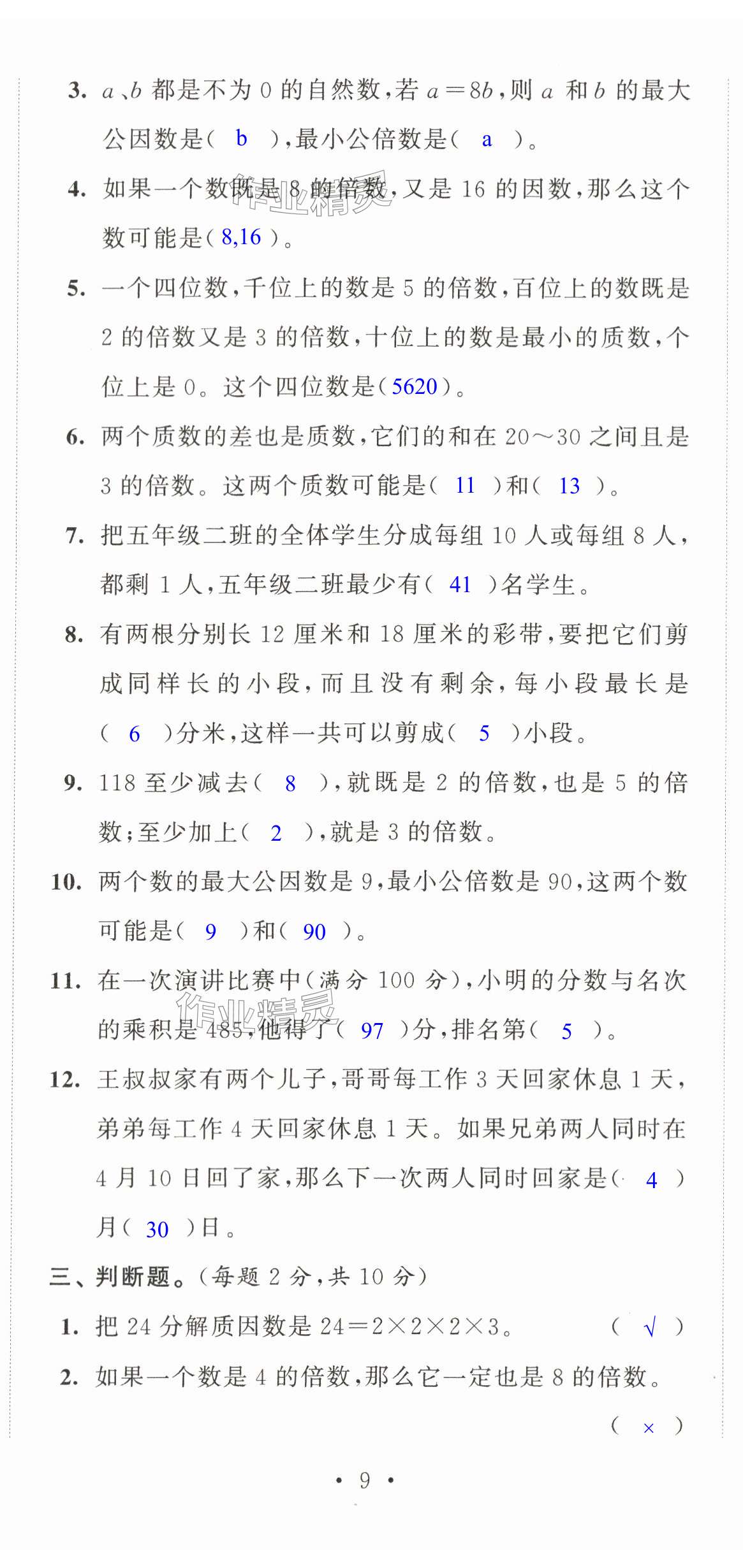 注:目前有些书本章节名称可能整理的还不是很完善,但都是按照顺序排列的,请同学们按照顺序仔细查找。练习册 2024年配套单元检测五年级数学下册苏教版 答案主要是用来给同学们做完题方便对答案用的,请勿直接抄袭。