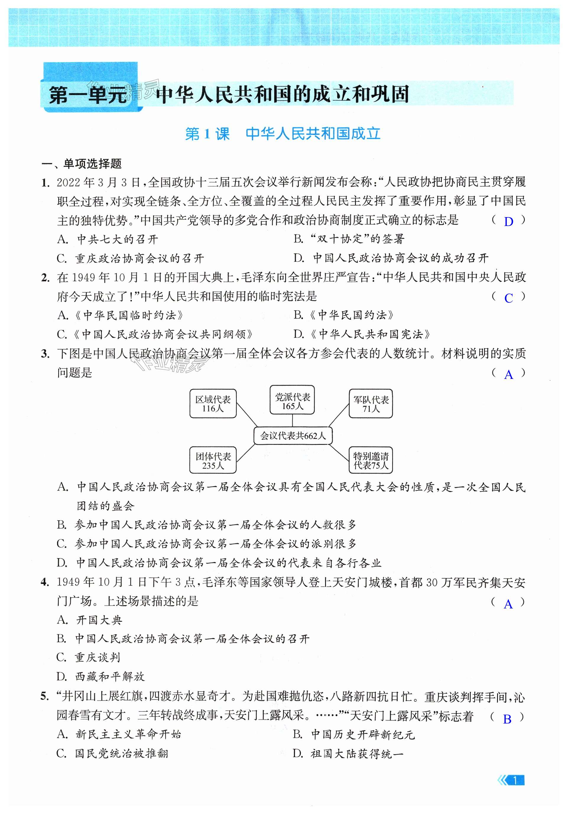 注:目前有些书本章节名称可能整理的还不是很完善,但都是按照顺序排列的,请同学们按照顺序仔细查找。练习册 2024年课时提优计划作业本八年级历史下册人教版 答案主要是用来给同学们做完题方便对答案用的,请勿直接抄袭。