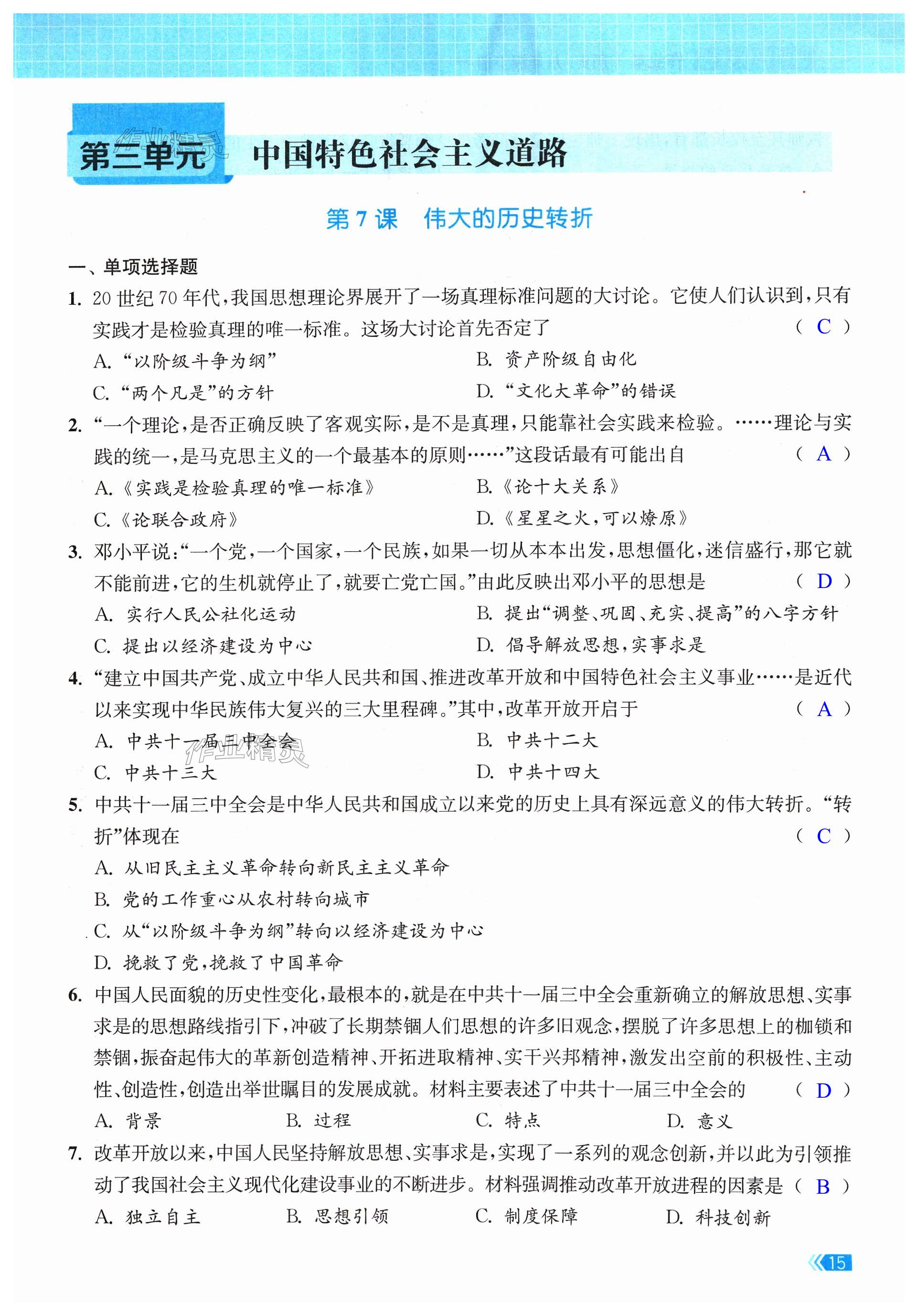 注:目前有些书本章节名称可能整理的还不是很完善,但都是按照顺序排列的,请同学们按照顺序仔细查找。练习册 2024年课时提优计划作业本八年级历史下册人教版 答案主要是用来给同学们做完题方便对答案用的,请勿直接抄袭。