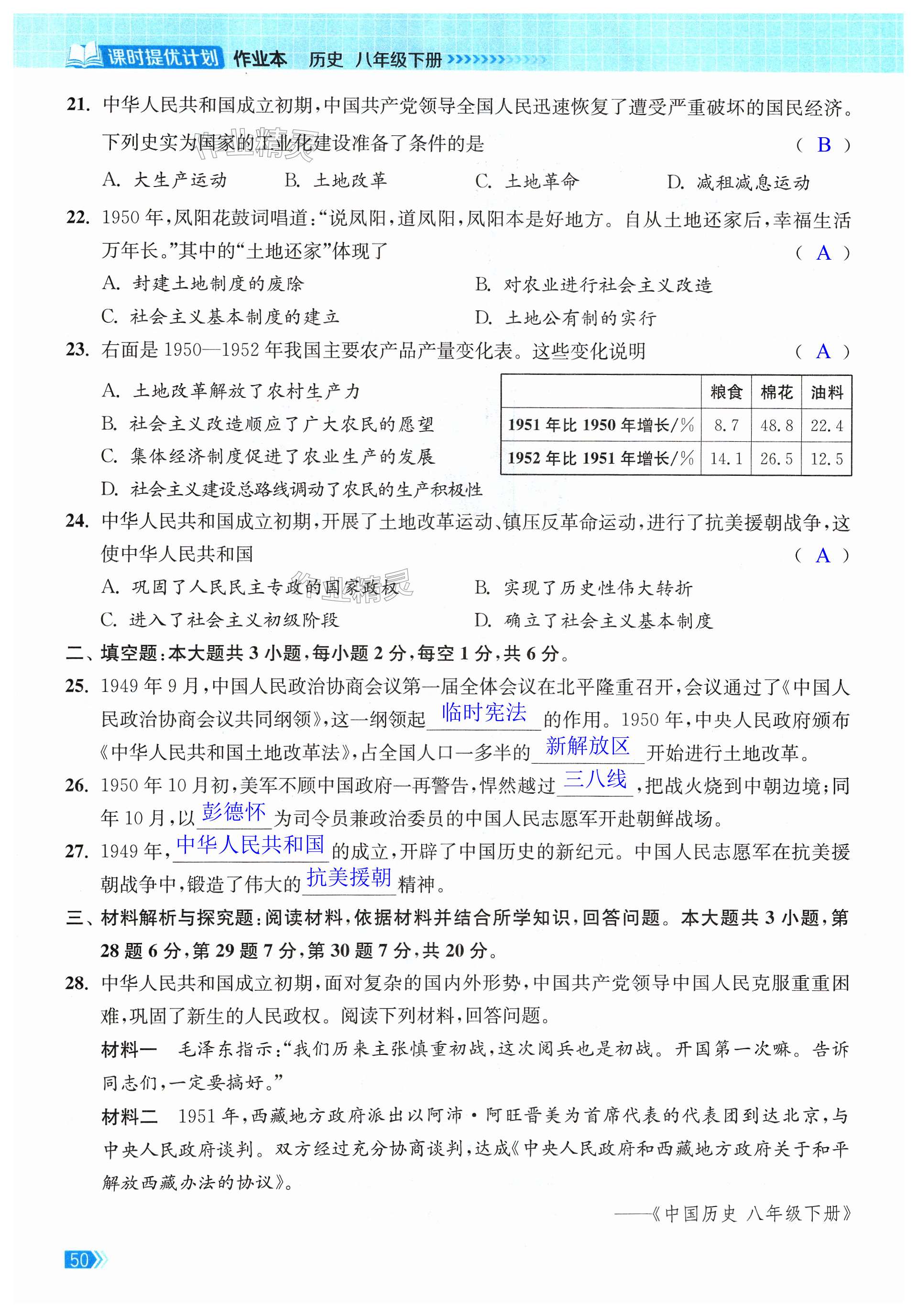 注:目前有些书本章节名称可能整理的还不是很完善,但都是按照顺序排列的,请同学们按照顺序仔细查找。练习册 2024年课时提优计划作业本八年级历史下册人教版 答案主要是用来给同学们做完题方便对答案用的,请勿直接抄袭。