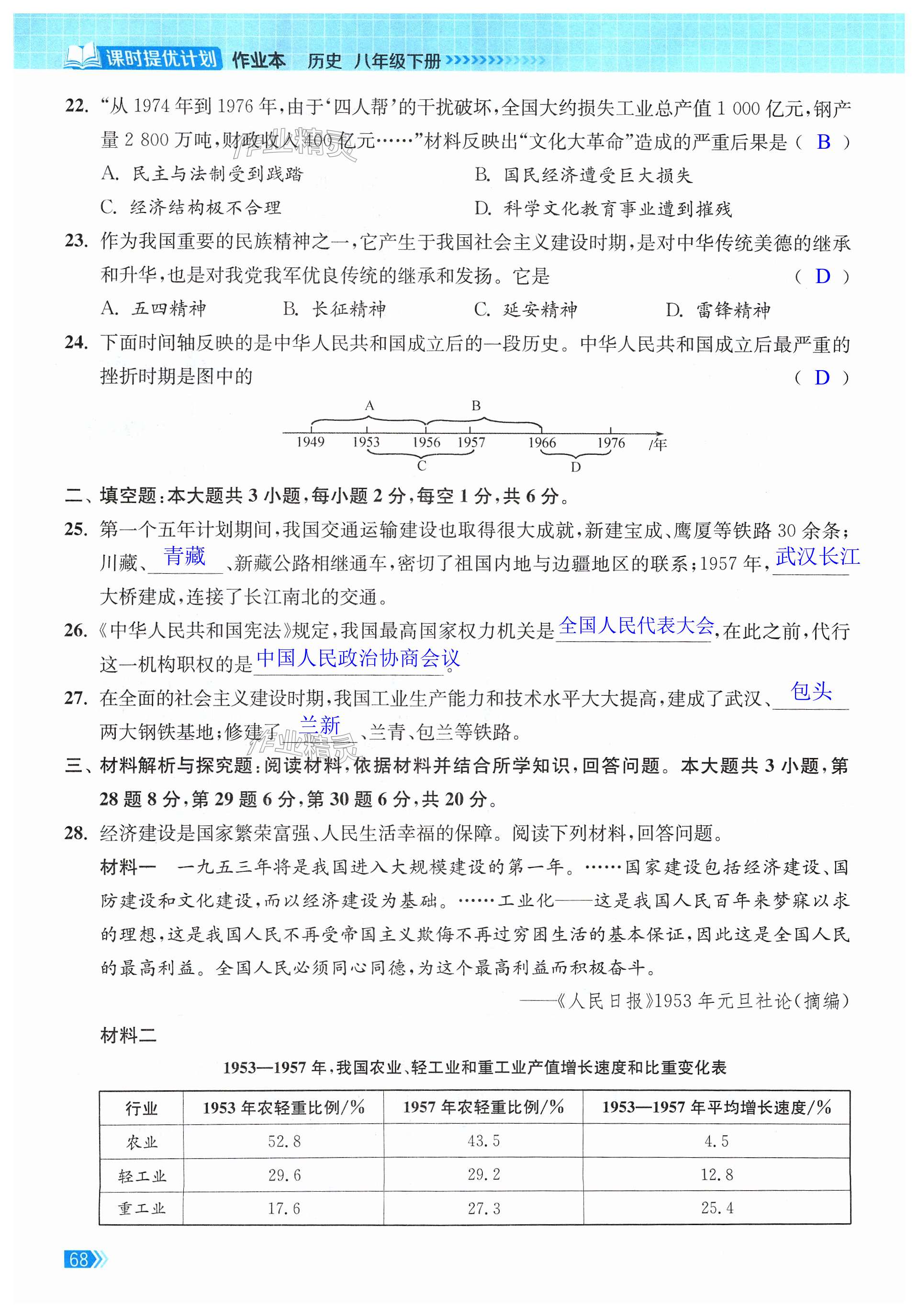 注:目前有些书本章节名称可能整理的还不是很完善,但都是按照顺序排列的,请同学们按照顺序仔细查找。练习册 2024年课时提优计划作业本八年级历史下册人教版 答案主要是用来给同学们做完题方便对答案用的,请勿直接抄袭。