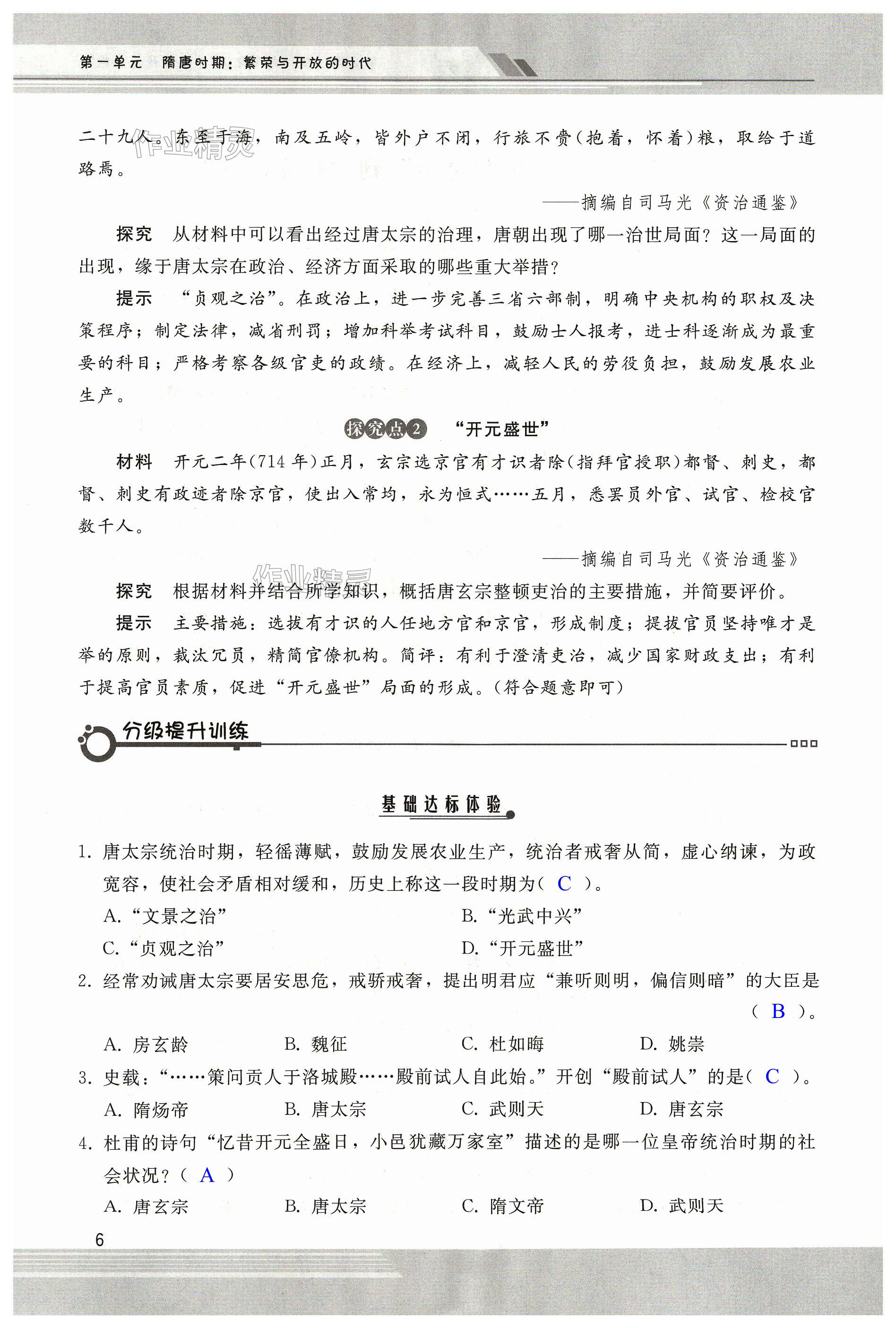 注:目前有些书本章节名称可能整理的还不是很完善,但都是按照顺序排列的,请同学们按照顺序仔细查找。练习册 2024年新课程学习辅导七年级历史下册人教版中山专版 答案主要是用来给同学们做完题方便对答案用的,请勿直接抄袭。