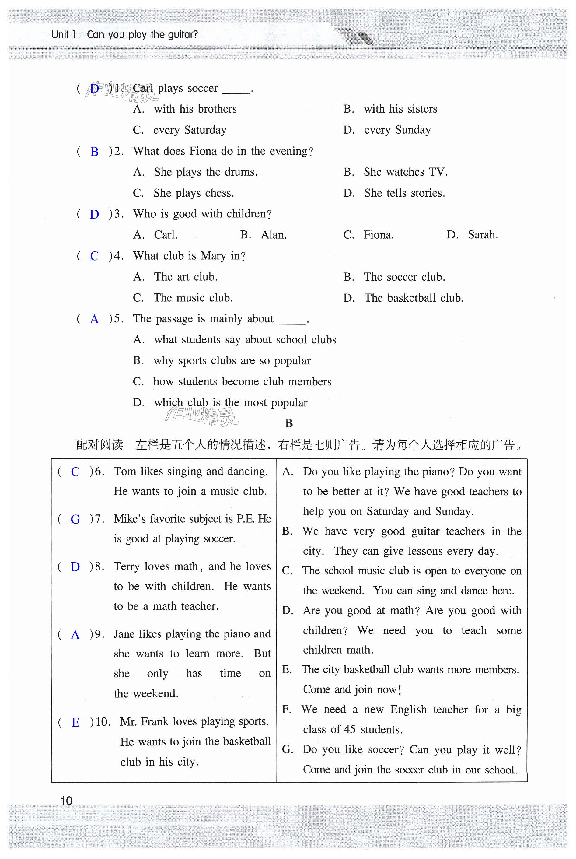 注:目前有些书本章节名称可能整理的还不是很完善,但都是按照顺序排列的,请同学们按照顺序仔细查找。练习册 2024年新课程学习辅导七年级英语下册人教版中山专版 答案主要是用来给同学们做完题方便对答案用的,请勿直接抄袭。