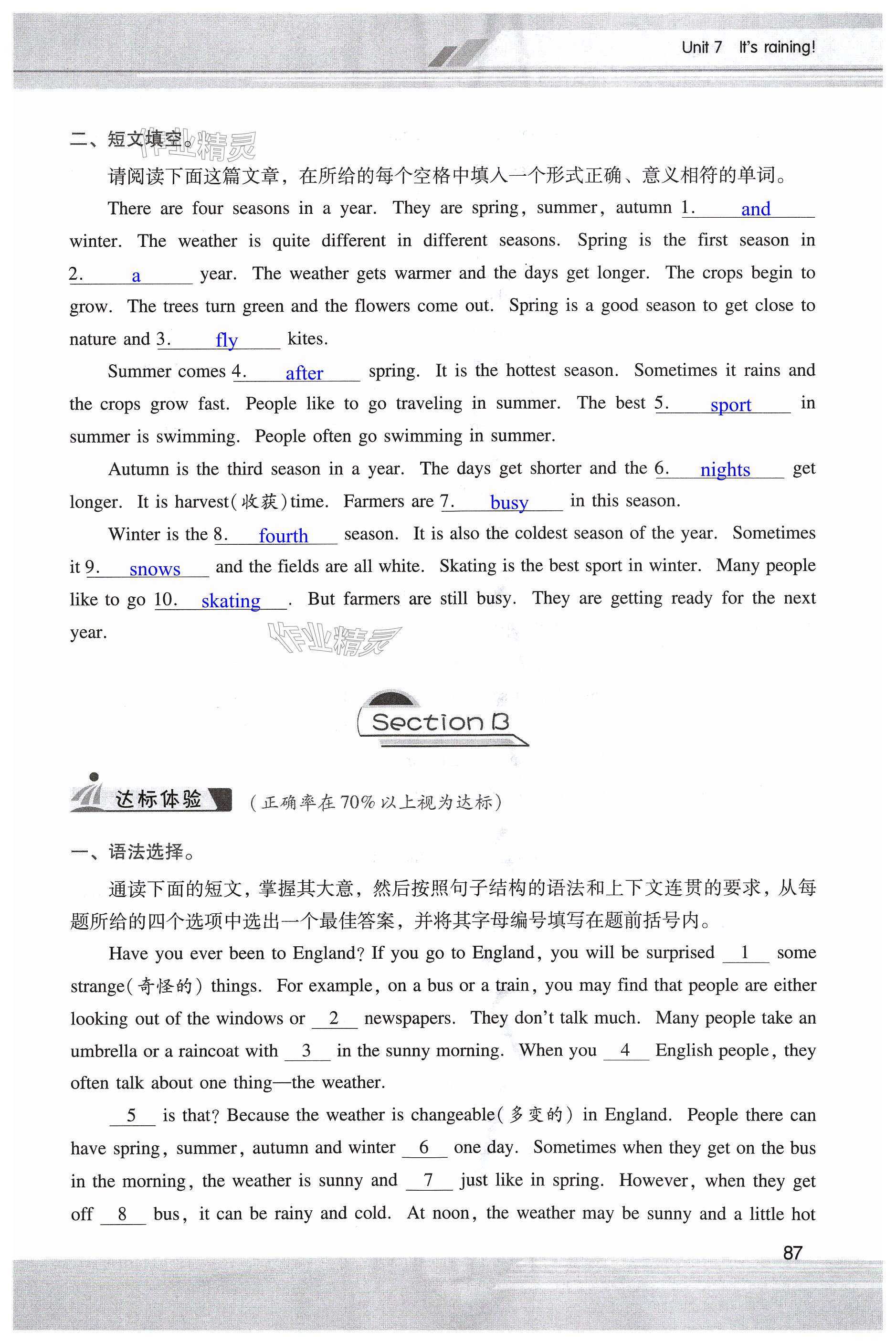 注:目前有些书本章节名称可能整理的还不是很完善,但都是按照顺序排列的,请同学们按照顺序仔细查找。练习册 2024年新课程学习辅导七年级英语下册人教版中山专版 答案主要是用来给同学们做完题方便对答案用的,请勿直接抄袭。