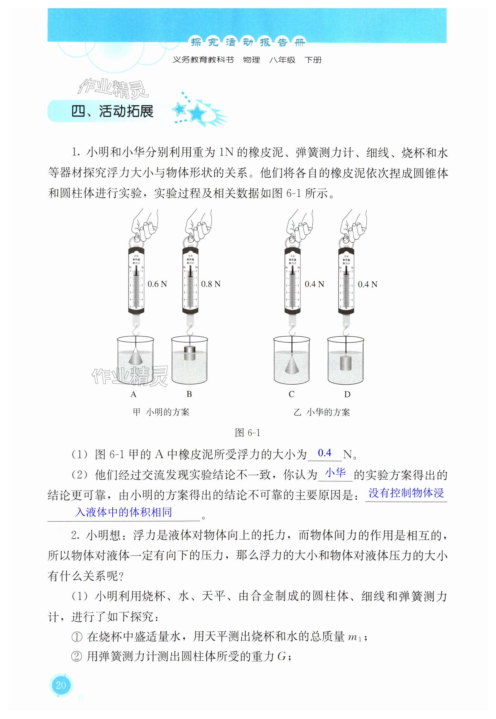 注:目前有些书本章节名称可能整理的还不是很完善,但都是按照顺序排列的,请同学们按照顺序仔细查找。练习册 2024年探究活动报告册八年级物理下册人教版 答案主要是用来给同学们做完题方便对答案用的,请勿直接抄袭。
