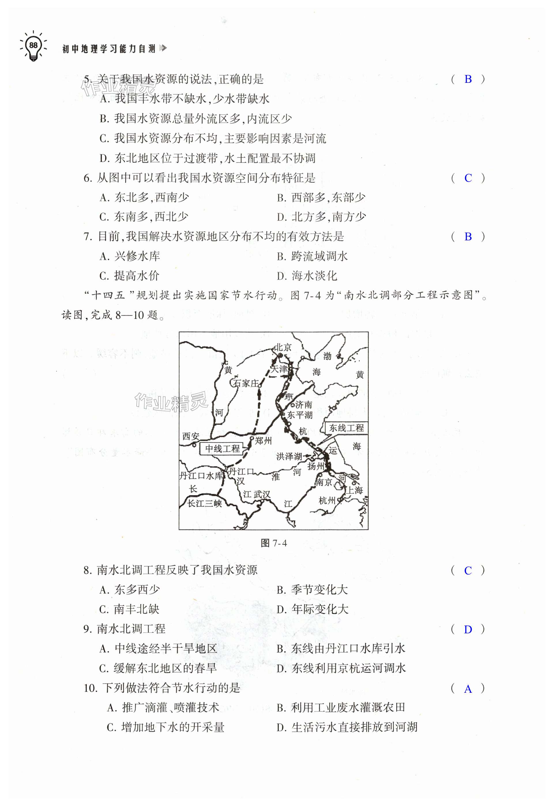 注:目前有些书本章节名称可能整理的还不是很完善,但都是按照顺序排列的,请同学们按照顺序仔细查找。练习册 2024年初中地理学习能力自测 答案主要是用来给同学们做完题方便对答案用的,请勿直接抄袭。