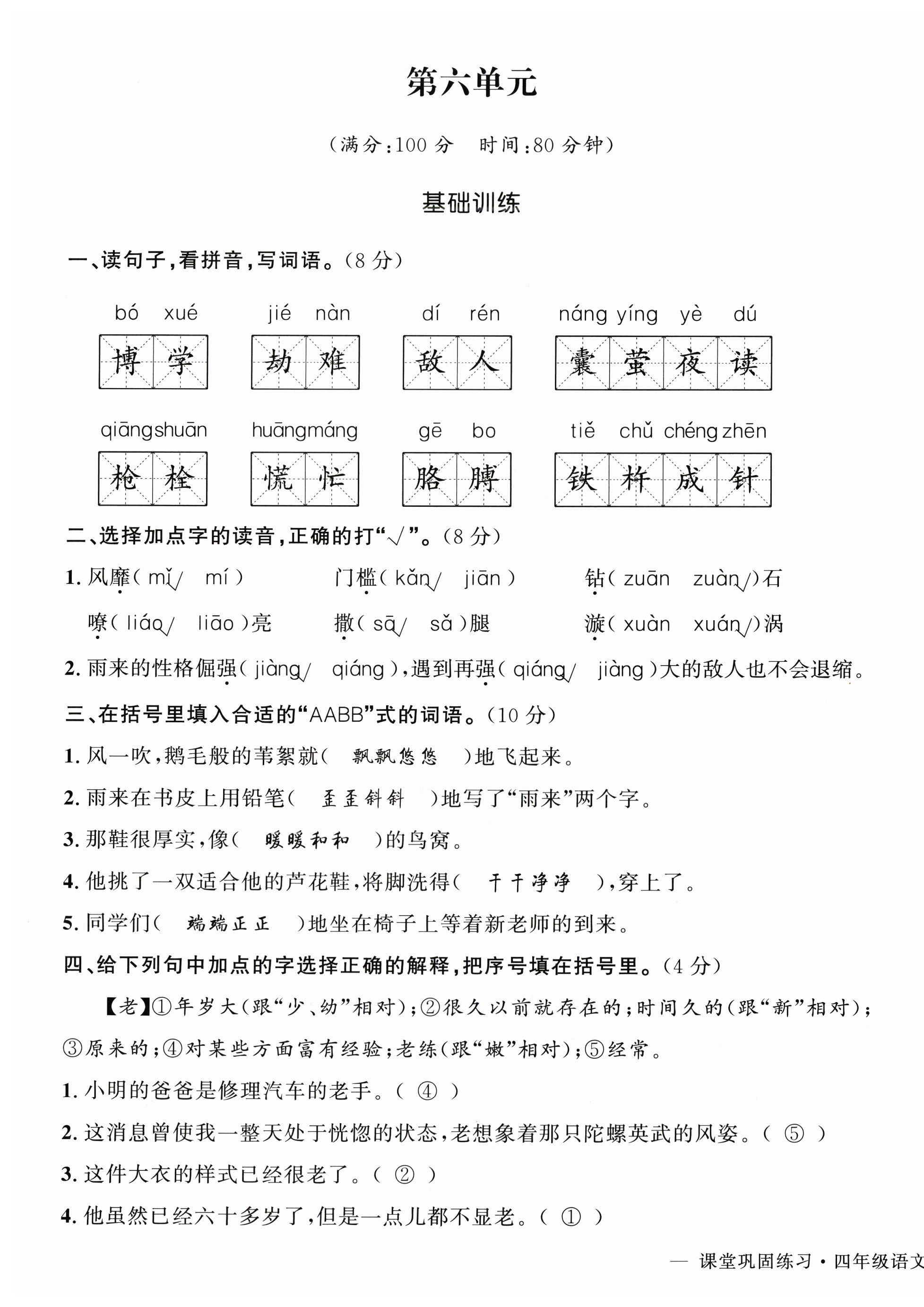 注:目前有些书本章节名称可能整理的还不是很完善,但都是按照顺序排列的,请同学们按照顺序仔细查找。练习册 2024年课堂巩固练习四年级语文下册人教版 答案主要是用来给同学们做完题方便对答案用的,请勿直接抄袭。