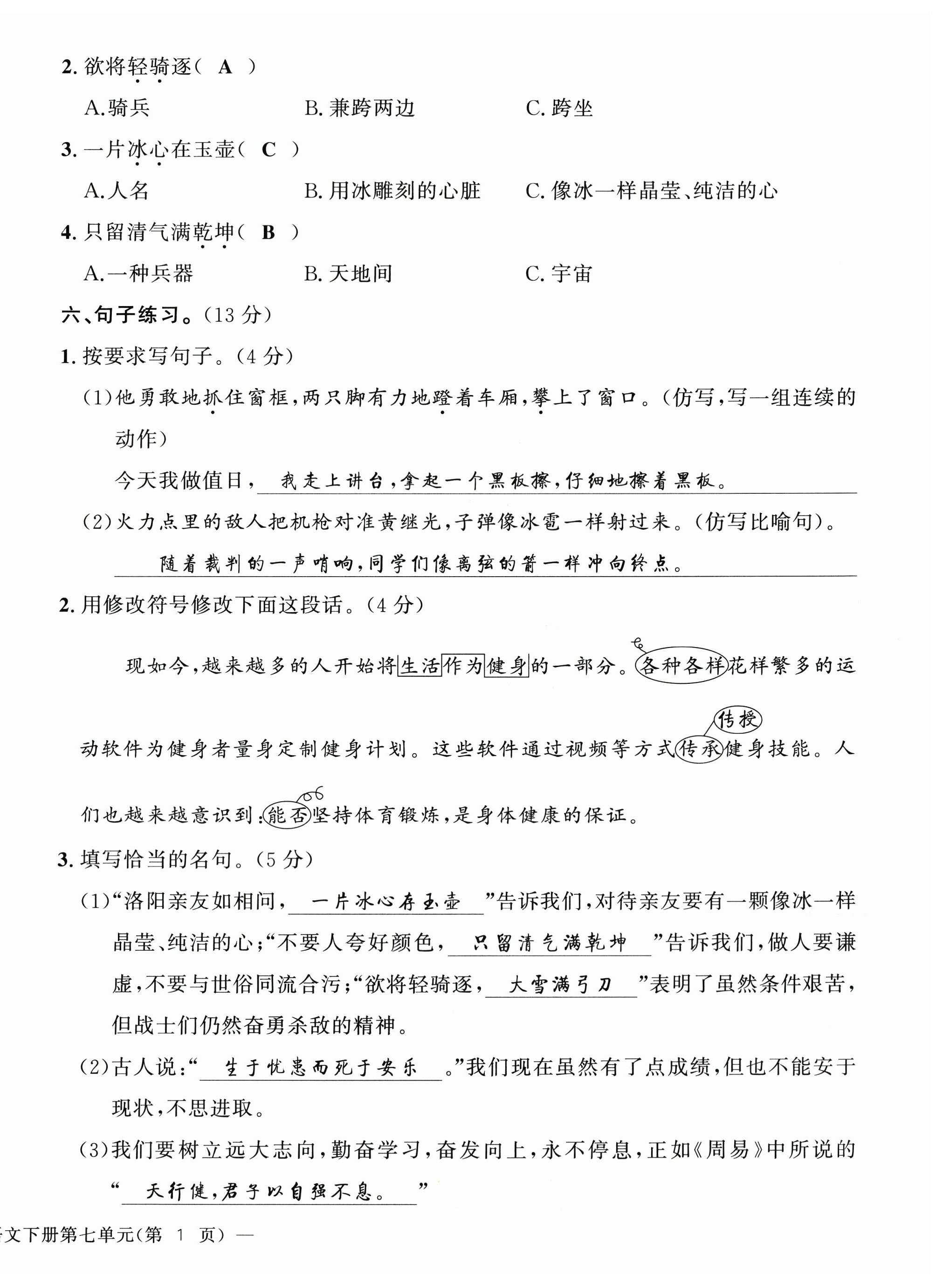 注:目前有些书本章节名称可能整理的还不是很完善,但都是按照顺序排列的,请同学们按照顺序仔细查找。练习册 2024年课堂巩固练习四年级语文下册人教版 答案主要是用来给同学们做完题方便对答案用的,请勿直接抄袭。