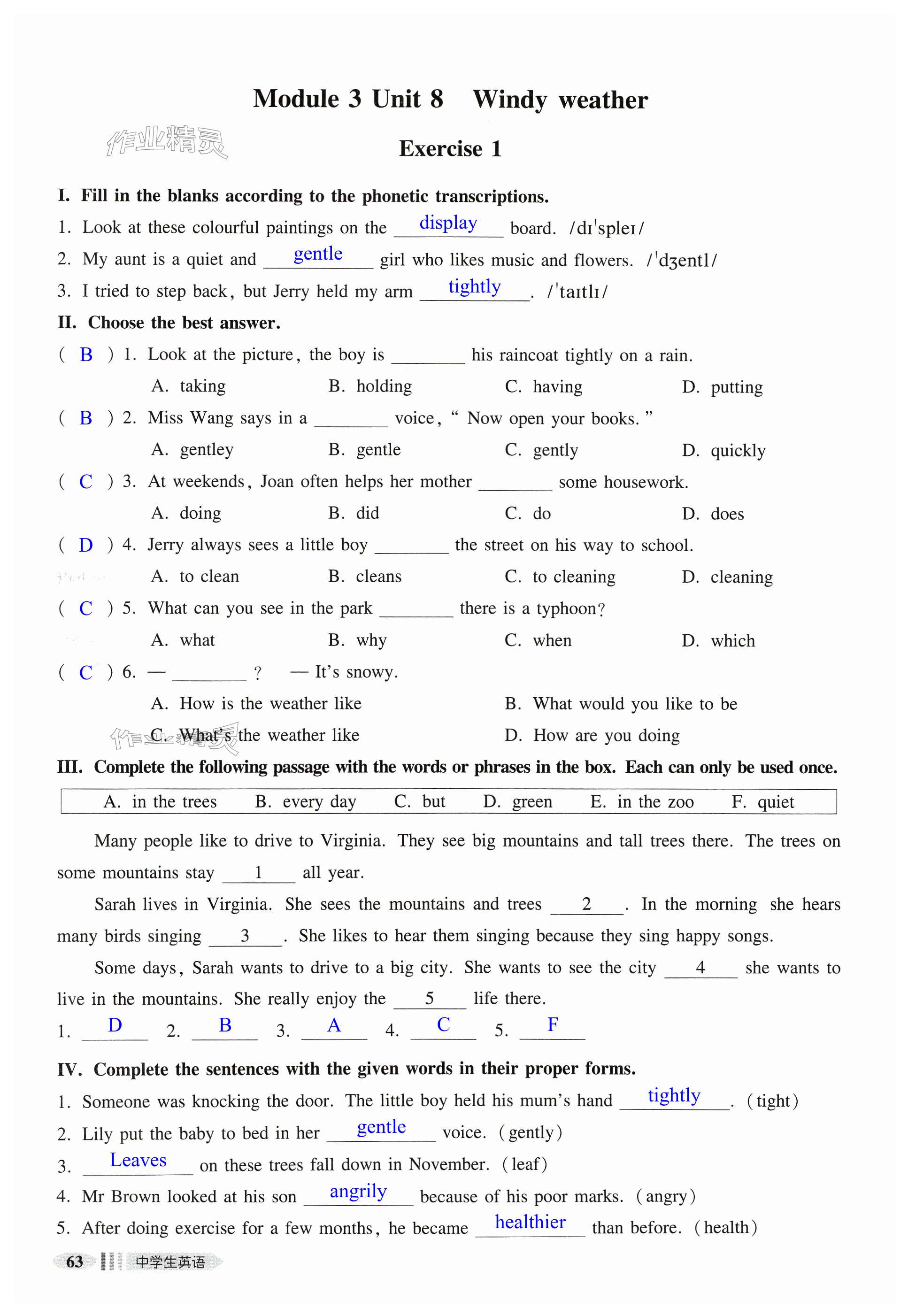 注:目前有些书本章节名称可能整理的还不是很完善,但都是按照顺序排列的,请同学们按照顺序仔细查找。练习册 2024年中学生英语同步精练六年级下册沪教版54制 答案主要是用来给同学们做完题方便对答案用的,请勿直接抄袭。